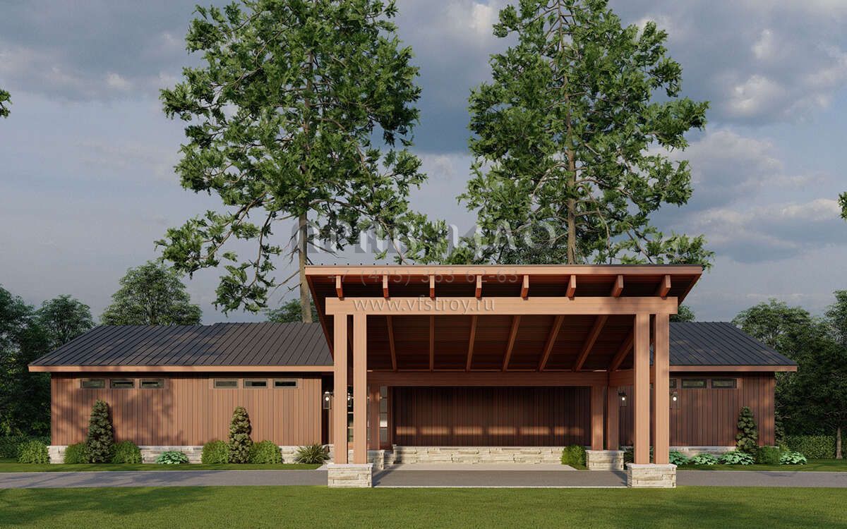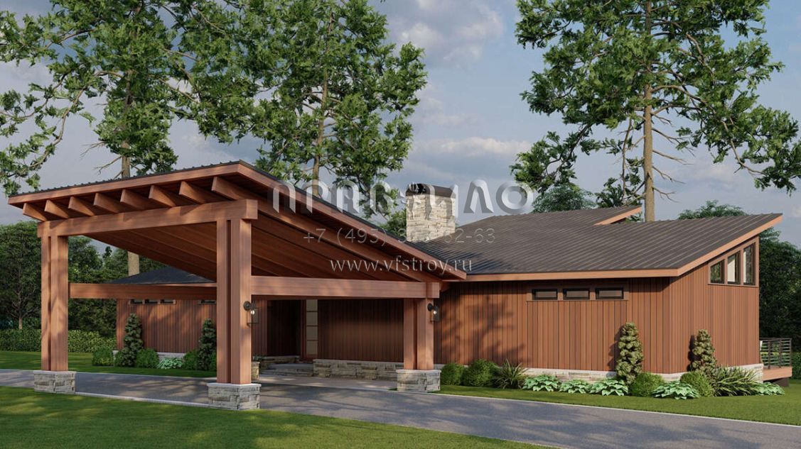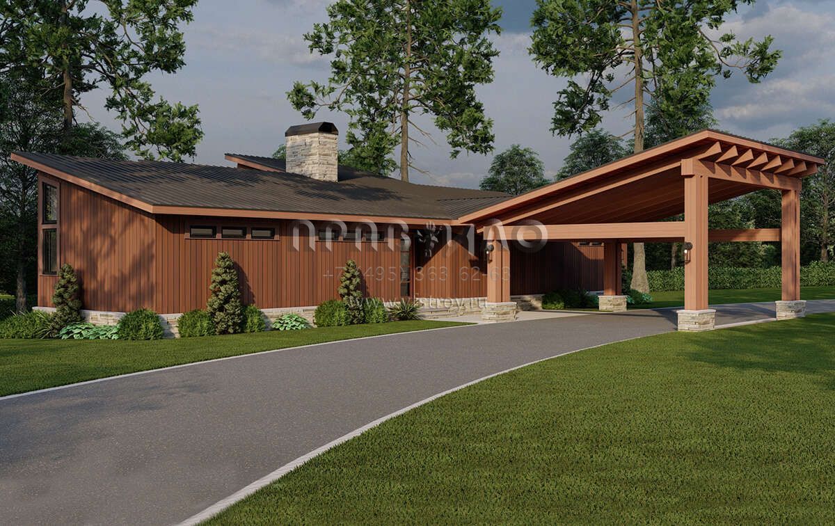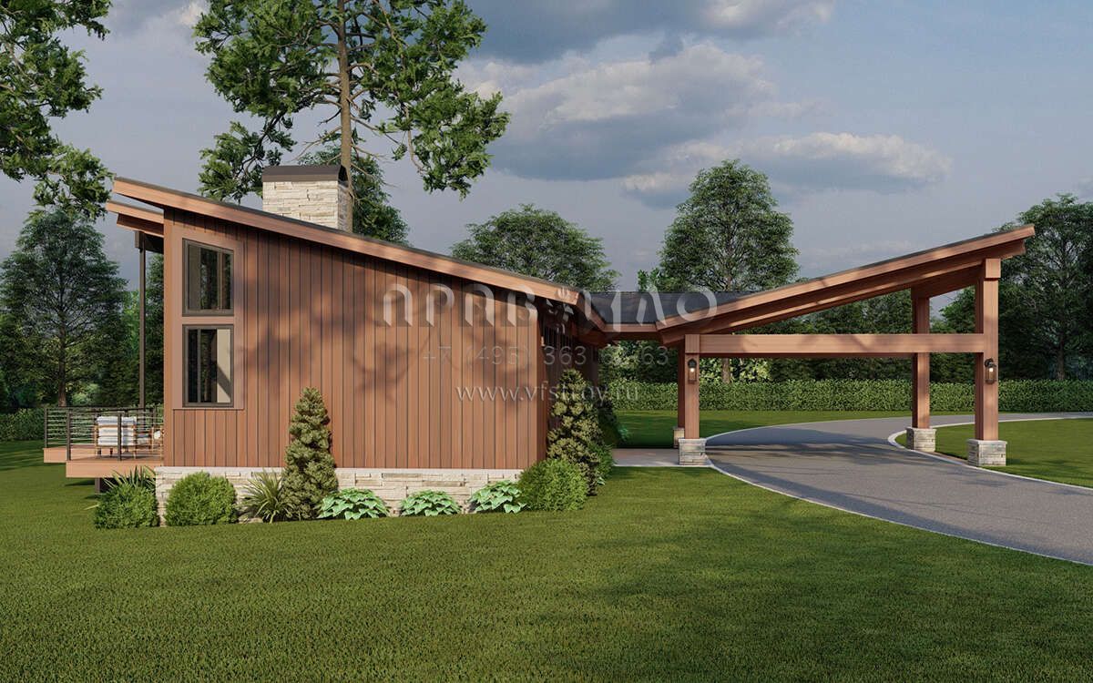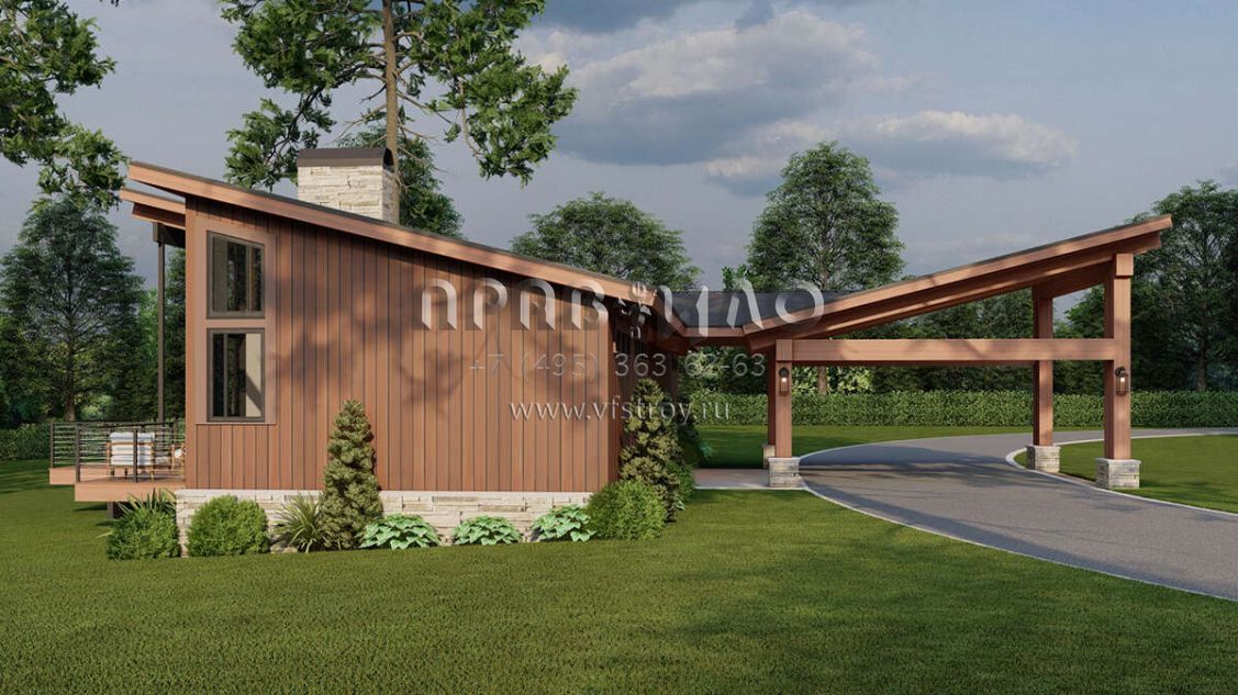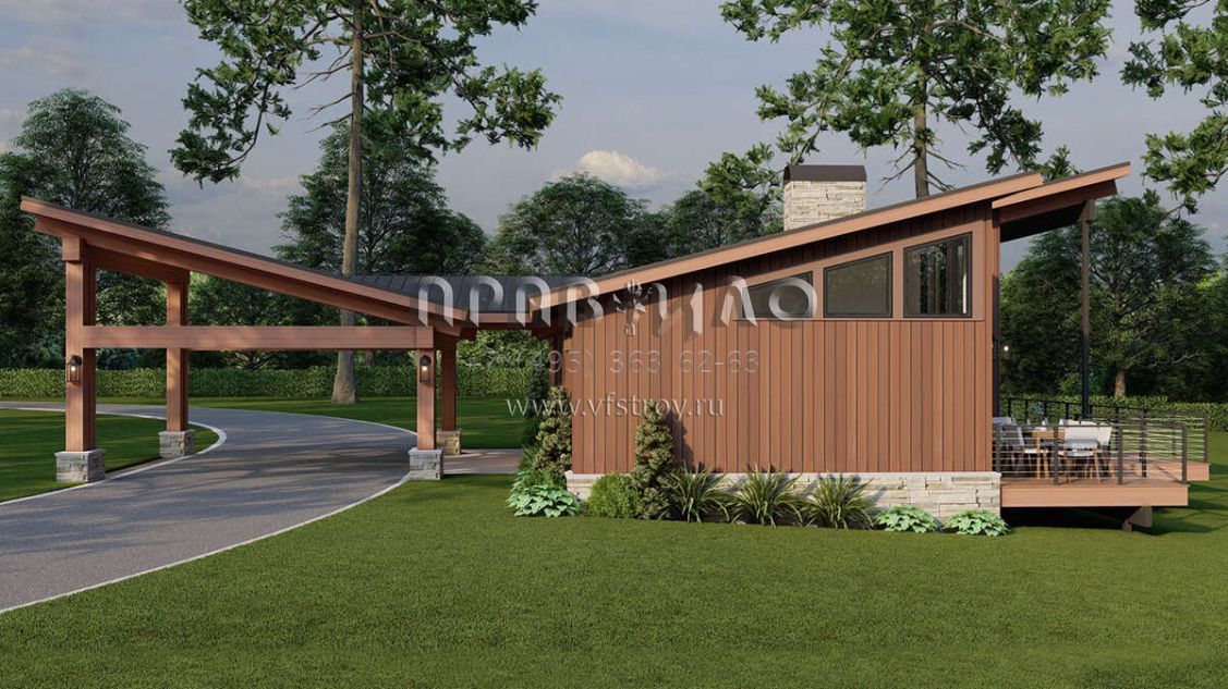 Проект одноэтажного дома с гаражом на одну машину в современном стиле S5-154 (8318-00367)