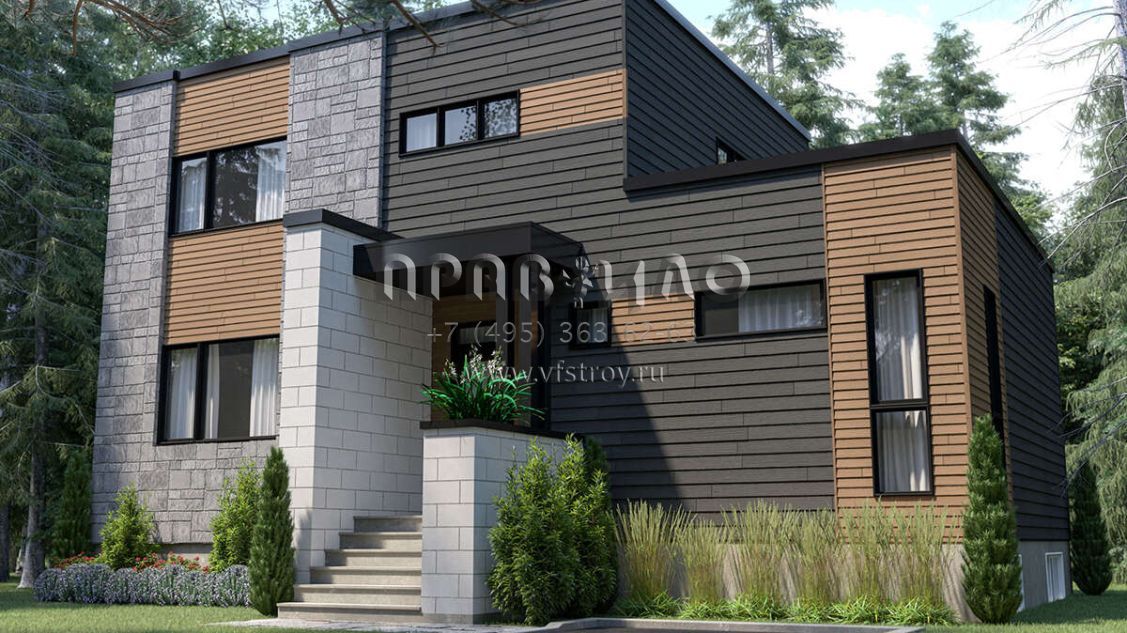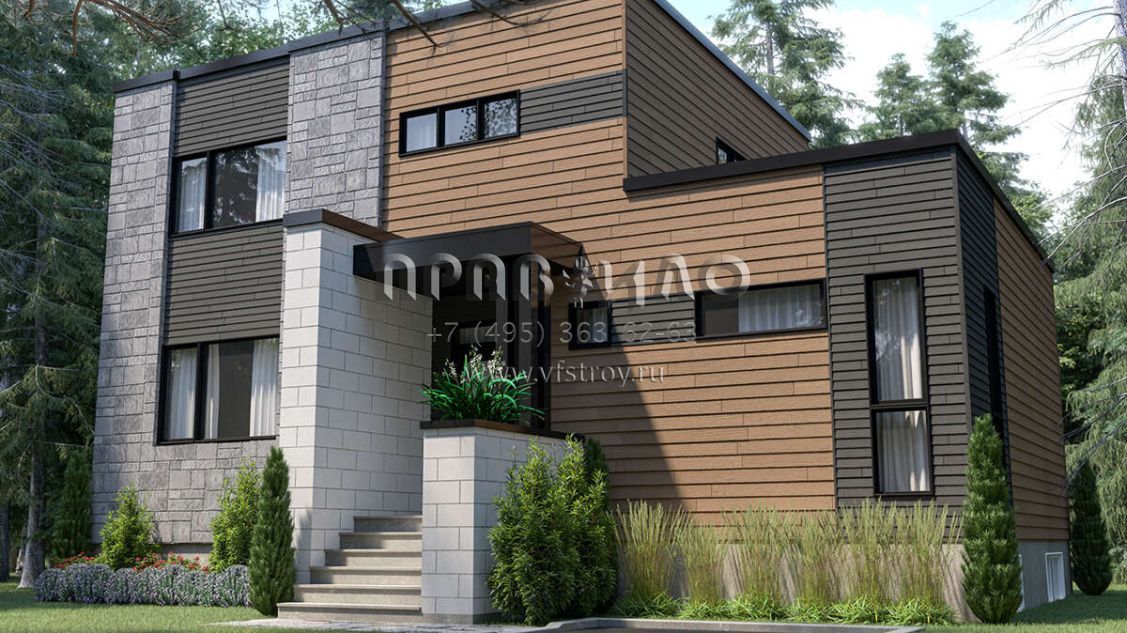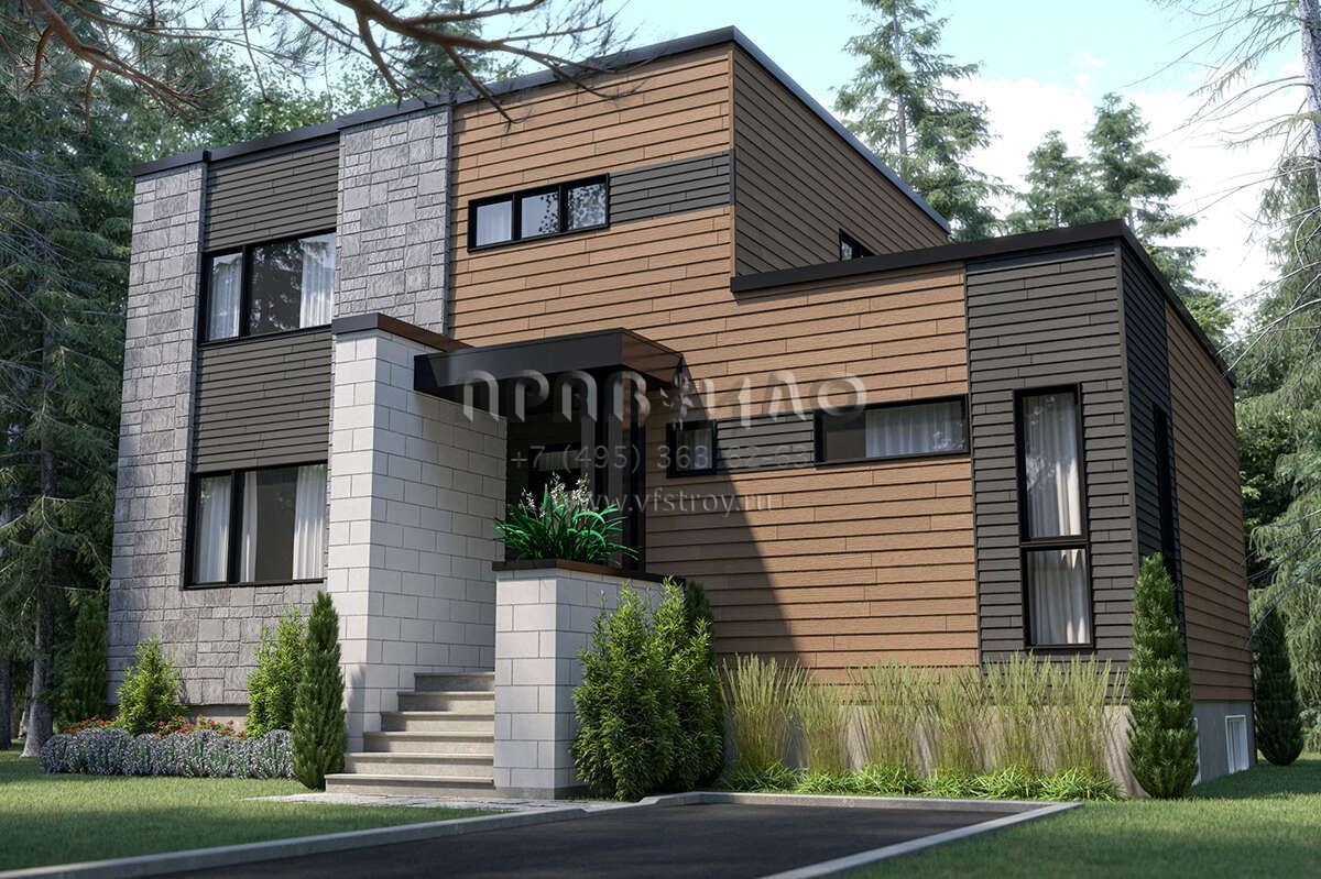 Проект двухэтажного дома без гаража в стиле хайтек S5-155 (034-01232)