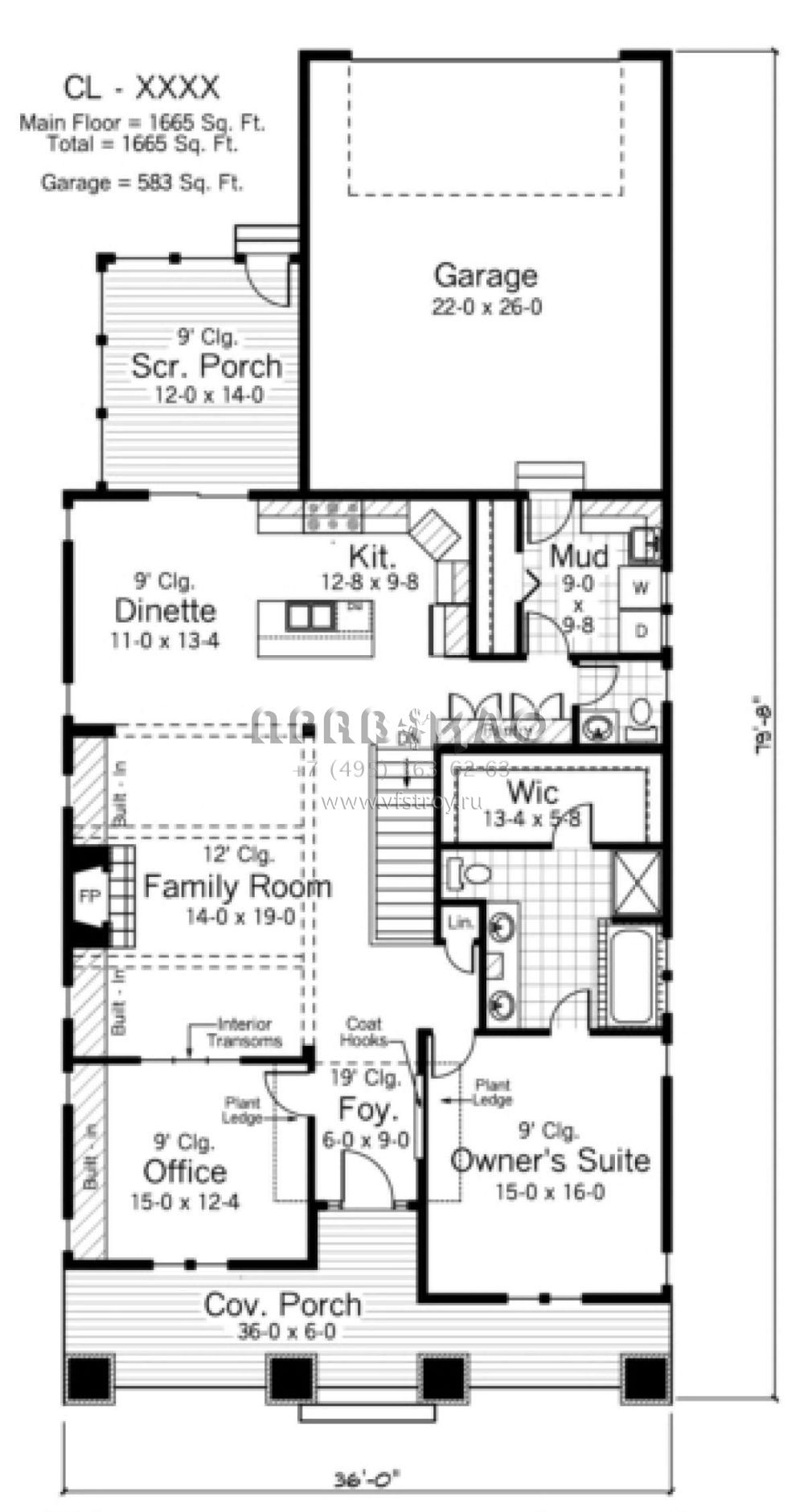 Поскольку этот проект разрабатывался иностранными архитекторами, для строительства дома требуется переработка проекта под действующие в России нормы. Данные визуализации проекта представлены для ознакомления с концепцией проекта. Проект разработан американским архитектурным бюро и представлен America's Best House Plans.