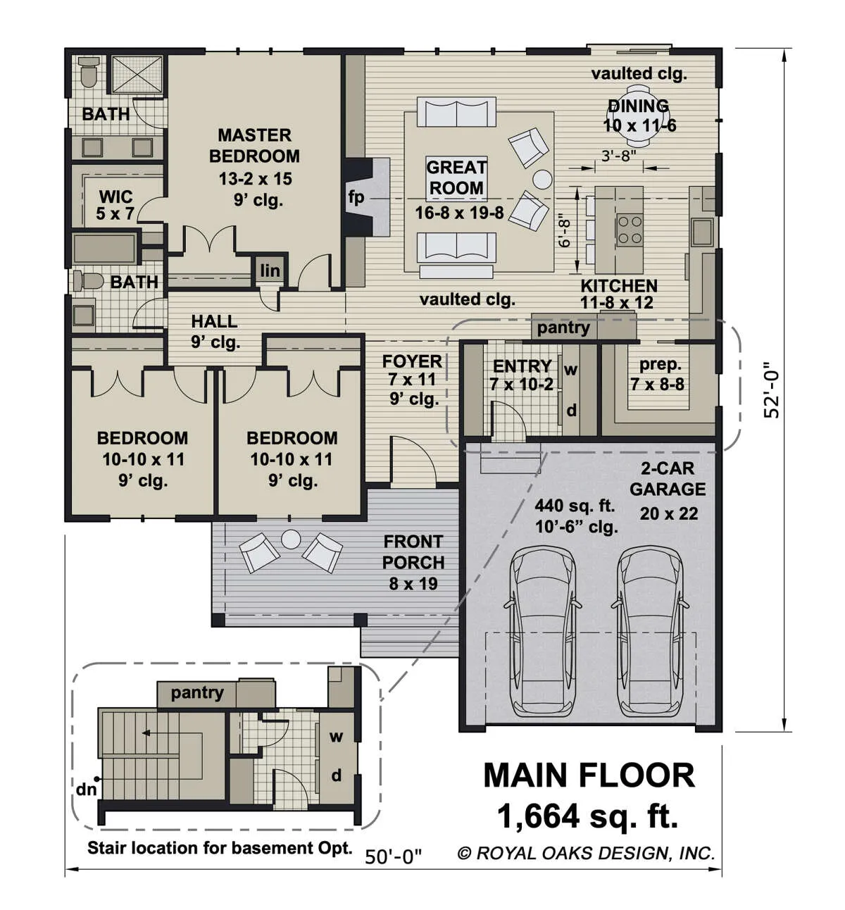 Это проект одноэтажного дома с гаражом на две машины жилой площадью 155 кв.м. Длина дома 15.8 м, ширина 15.2 м, высота 7.6 м. В доме три спальни и два санузла.