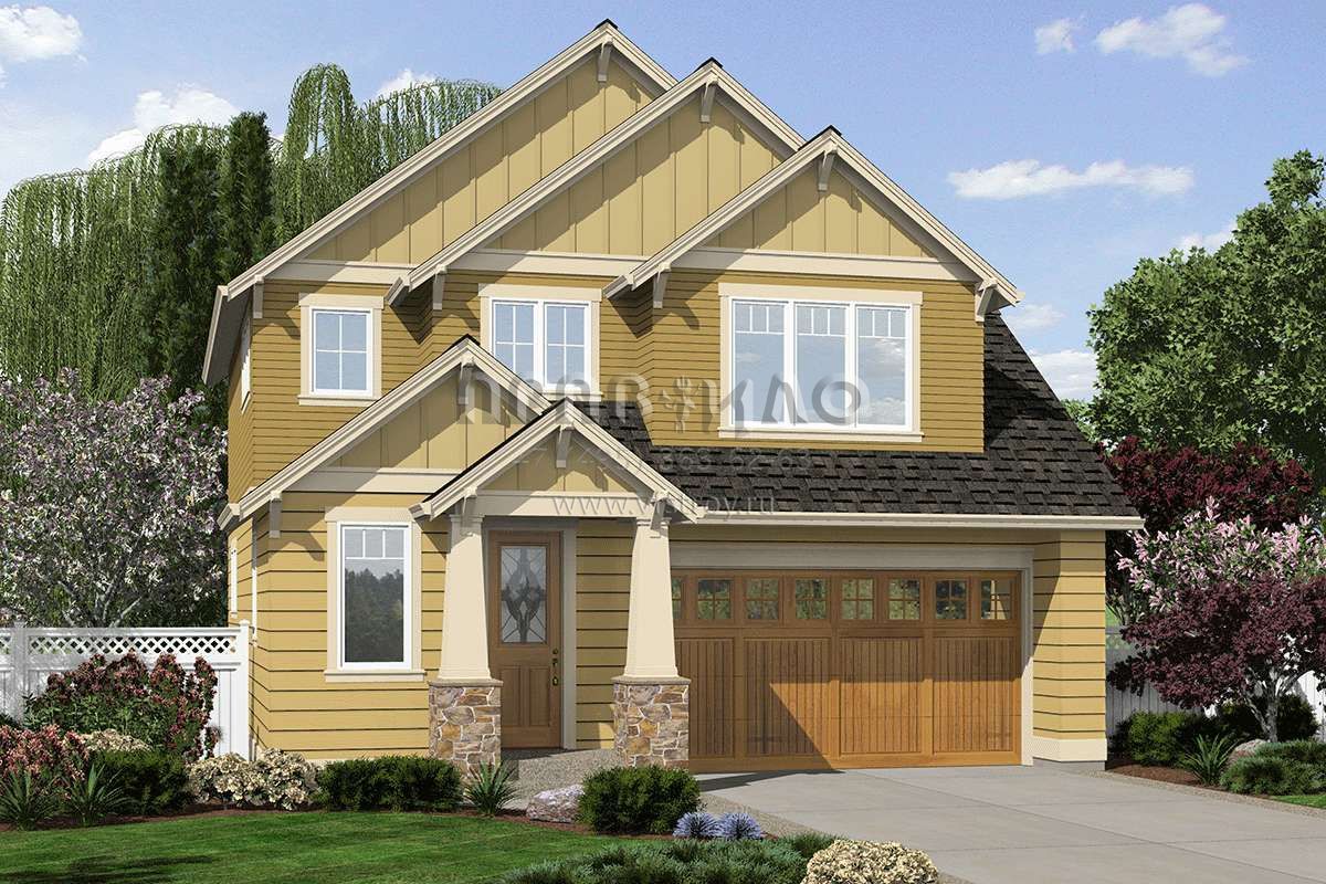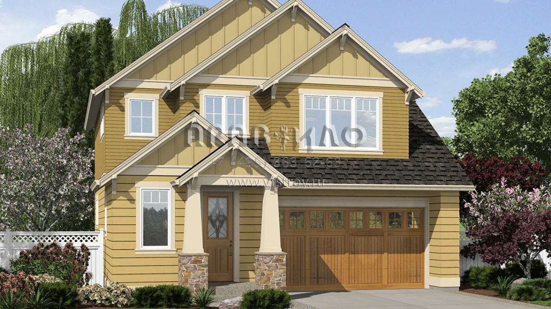 Проект двухэтажного дома с гаражом на две машины в стиле Ранчо S5-155 (2559-00024)