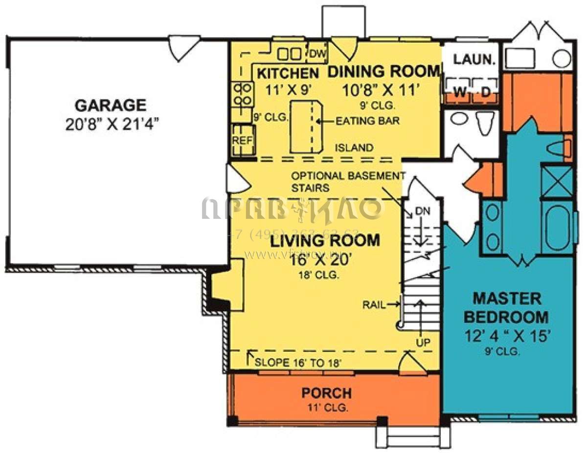 Проект двухэтажного дома с гаражом на две машины в стиле Ранчо S5-155 (4848-00223)