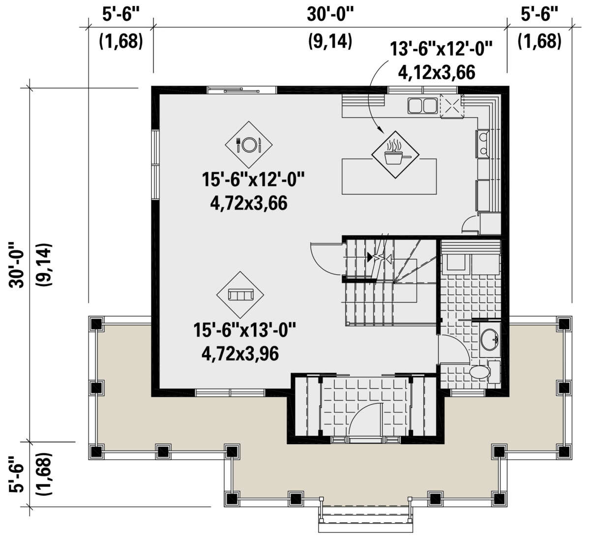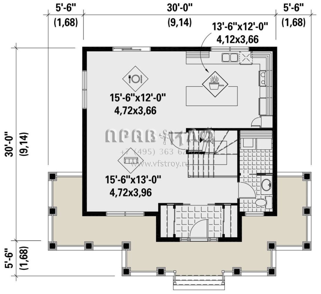 S5-155 (6146-00605) Это иностранный проект, для которого требуется адаптация под нормы, действующие в Российской Федерации. Вы видите проект дома в стиле Ранчо. В этом доме сочетаются черты сельской постройки и аскетичность лофта. Внутри жильцы смогут проводить время с максимальным комфортом. Обратим внимание, что сейчас на планировках все размеры представлены в футах. Для перевода в метры вам необходимо значение в футах умножить на 0,3048.