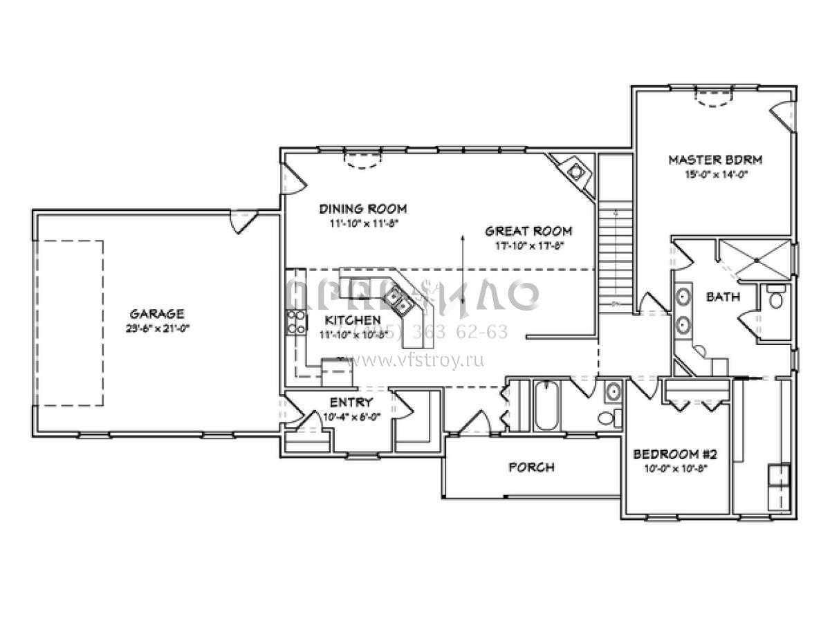 S5-155 (849-00009) Это иностранный проект, для которого требуется адаптация под нормы, действующие в Российской Федерации. Вы видите проект дома в стиле Ранчо. В этом доме сочетаются черты сельской постройки и аскетичность лофта. Внутри жильцы смогут проводить время с максимальным комфортом. Обратим внимание, что сейчас на планировках все размеры представлены в футах. Для перевода в метры вам необходимо значение в футах умножить на 0,3048.