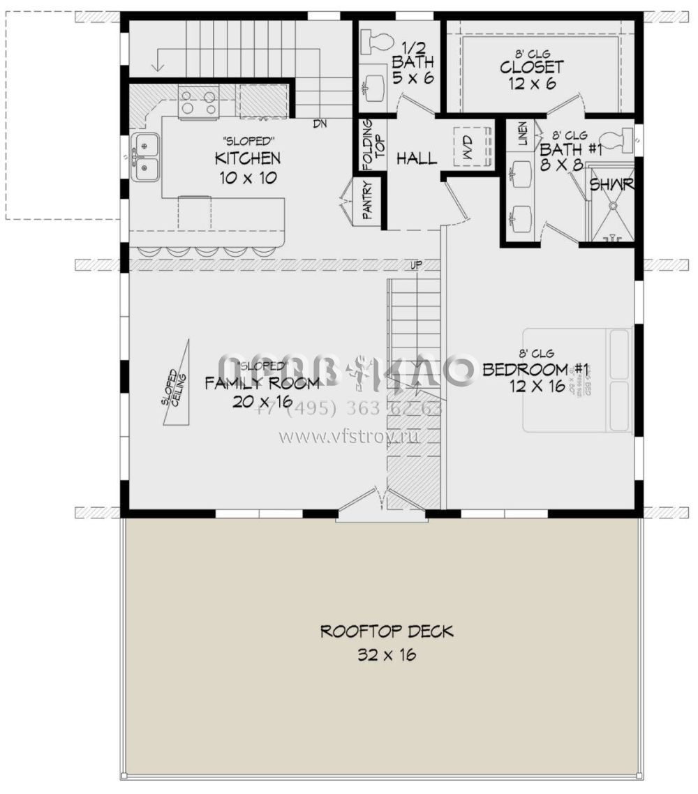 S5-155 (940-00860) Это иностранный проект, для которого требуется адаптация под нормы, действующие в Российской Федерации. Вы видите проект дома в современном стиле. В этом доме сочетаются черты сельской постройки и аскетичность лофта. Внутри жильцы смогут проводить время с максимальным комфортом. Обратим внимание, что сейчас на планировках все размеры представлены в футах. Для перевода в метры вам необходимо значение в футах умножить на 0,3048.