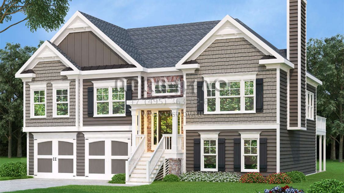 Проект двухэтажного дома с гаражом на две машины в стиле Ранчо S5-156 (009-00067)