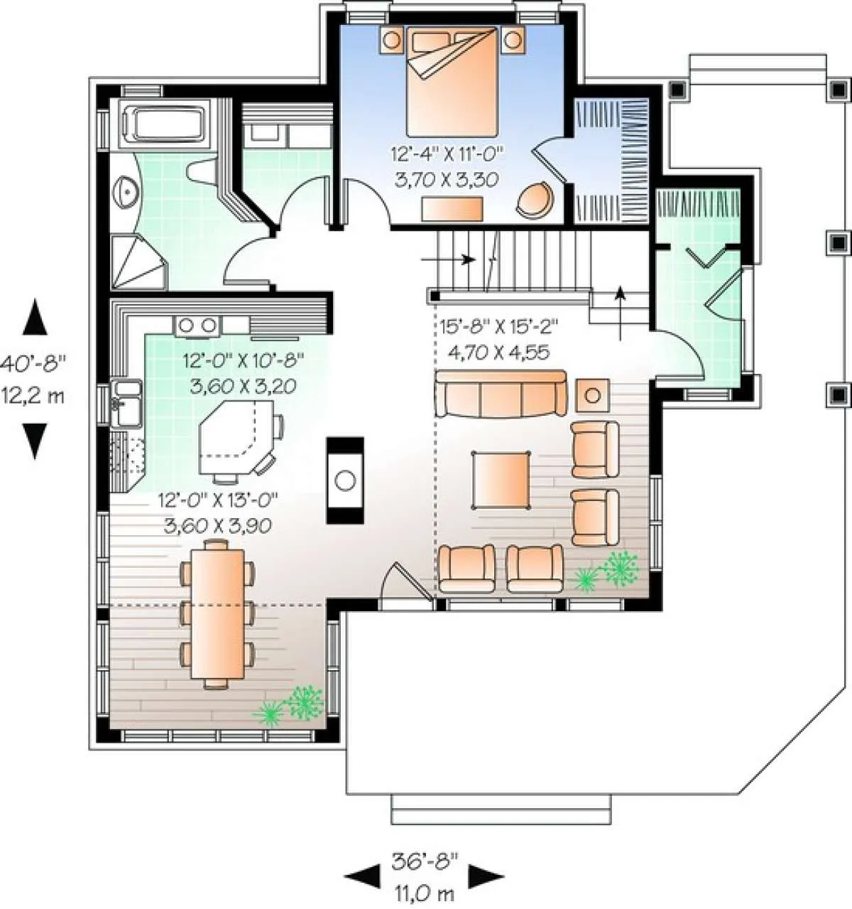 S5-156 (034-00885) Это иностранный проект, для которого требуется адаптация под нормы, действующие в Российской Федерации. Вы видите проект дома в американском стиле. В этом доме сочетаются черты сельской постройки и аскетичность лофта. Внутри жильцы смогут проводить время с максимальным комфортом. Обратим внимание, что сейчас на планировках все размеры представлены в футах. Для перевода в метры вам необходимо значение в футах умножить на 0,3048.