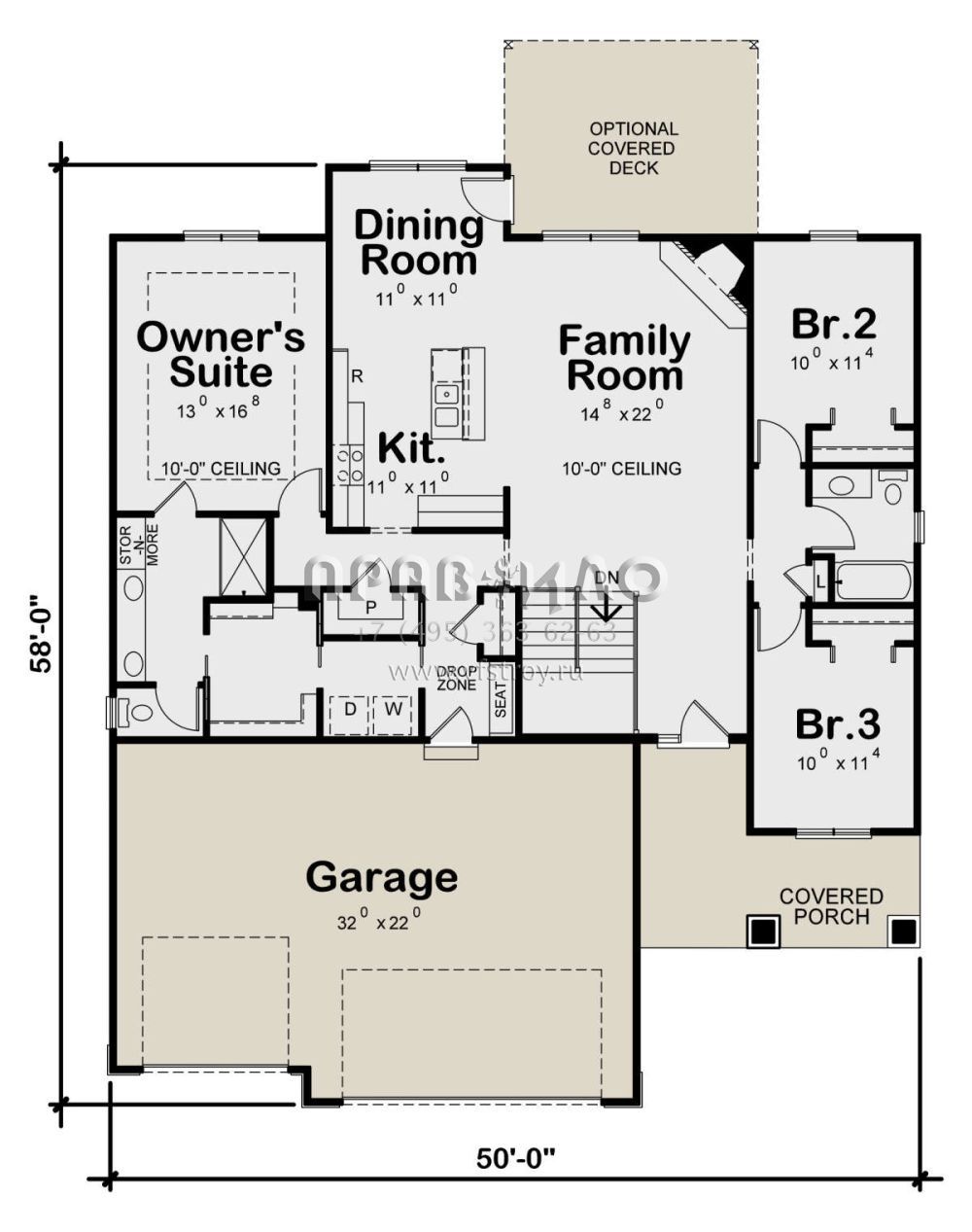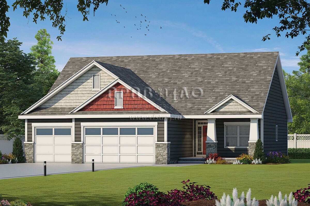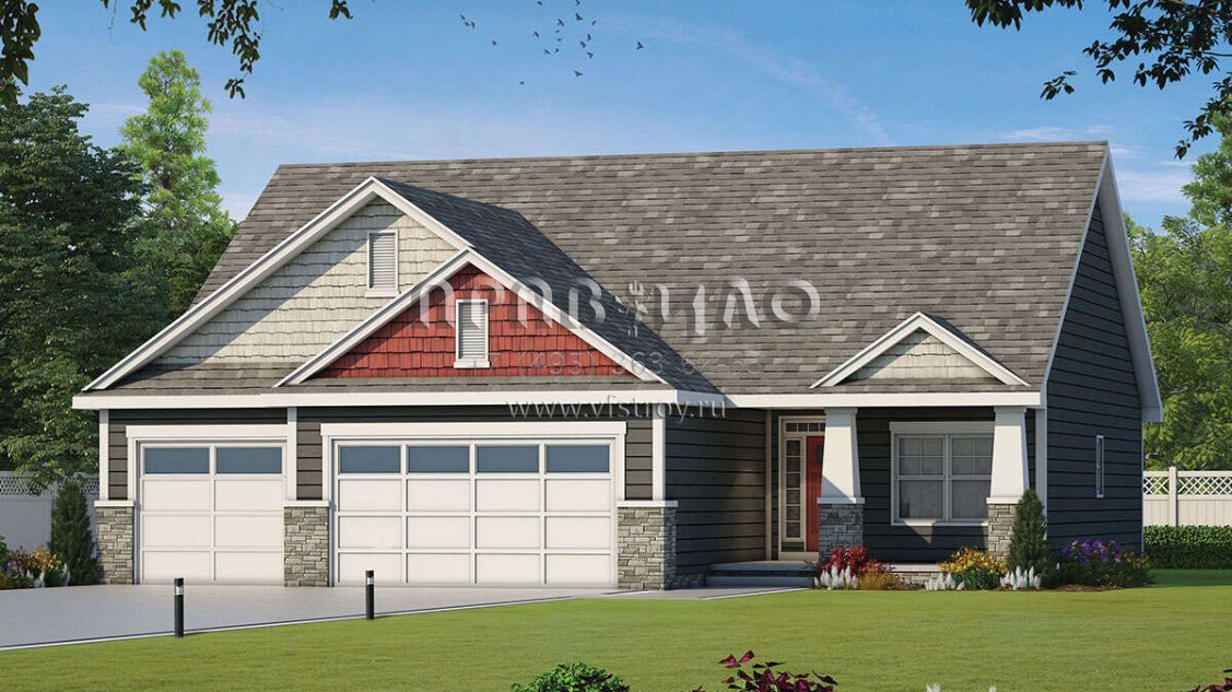Проект одноэтажного дома с гаражом на три и более машин в американском стиле S5-156 (402-01704)