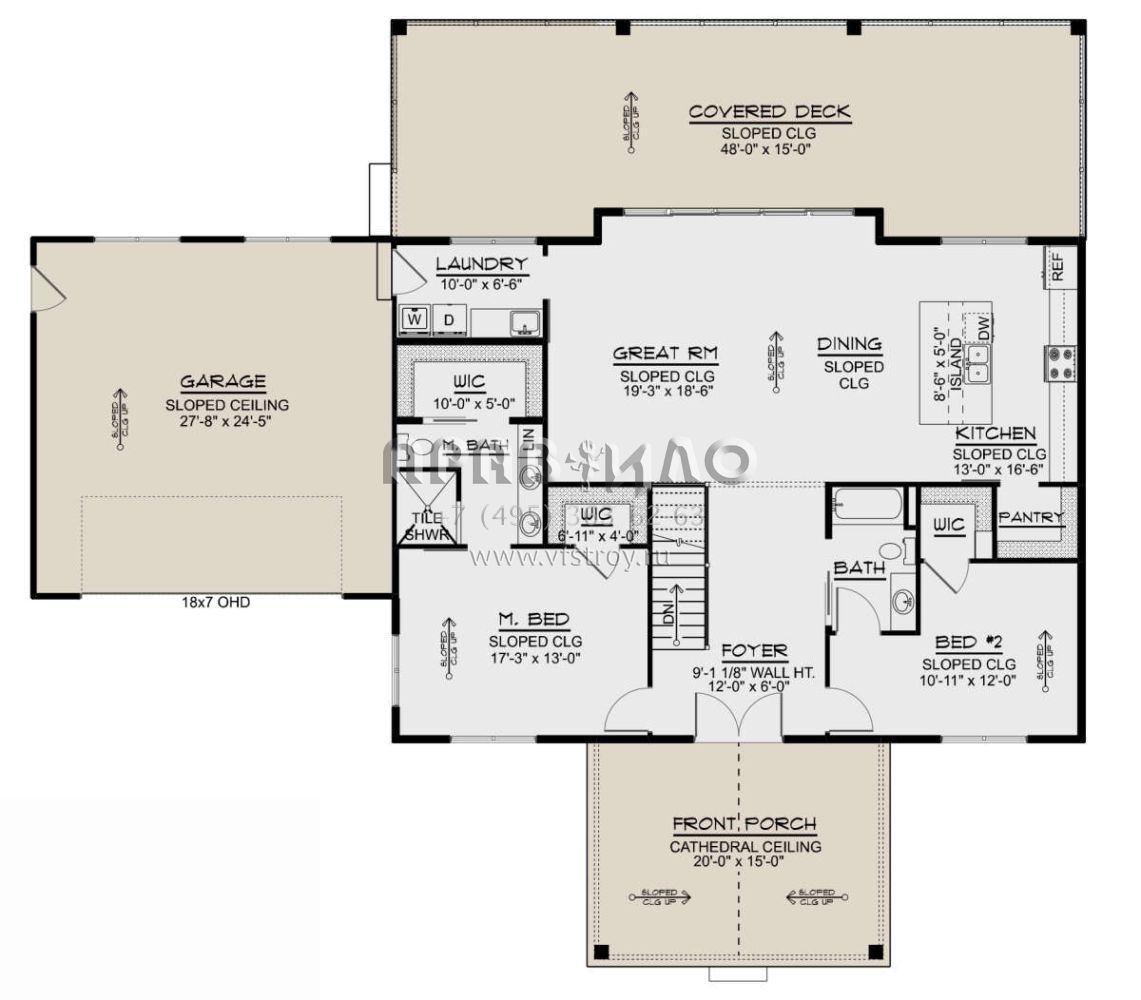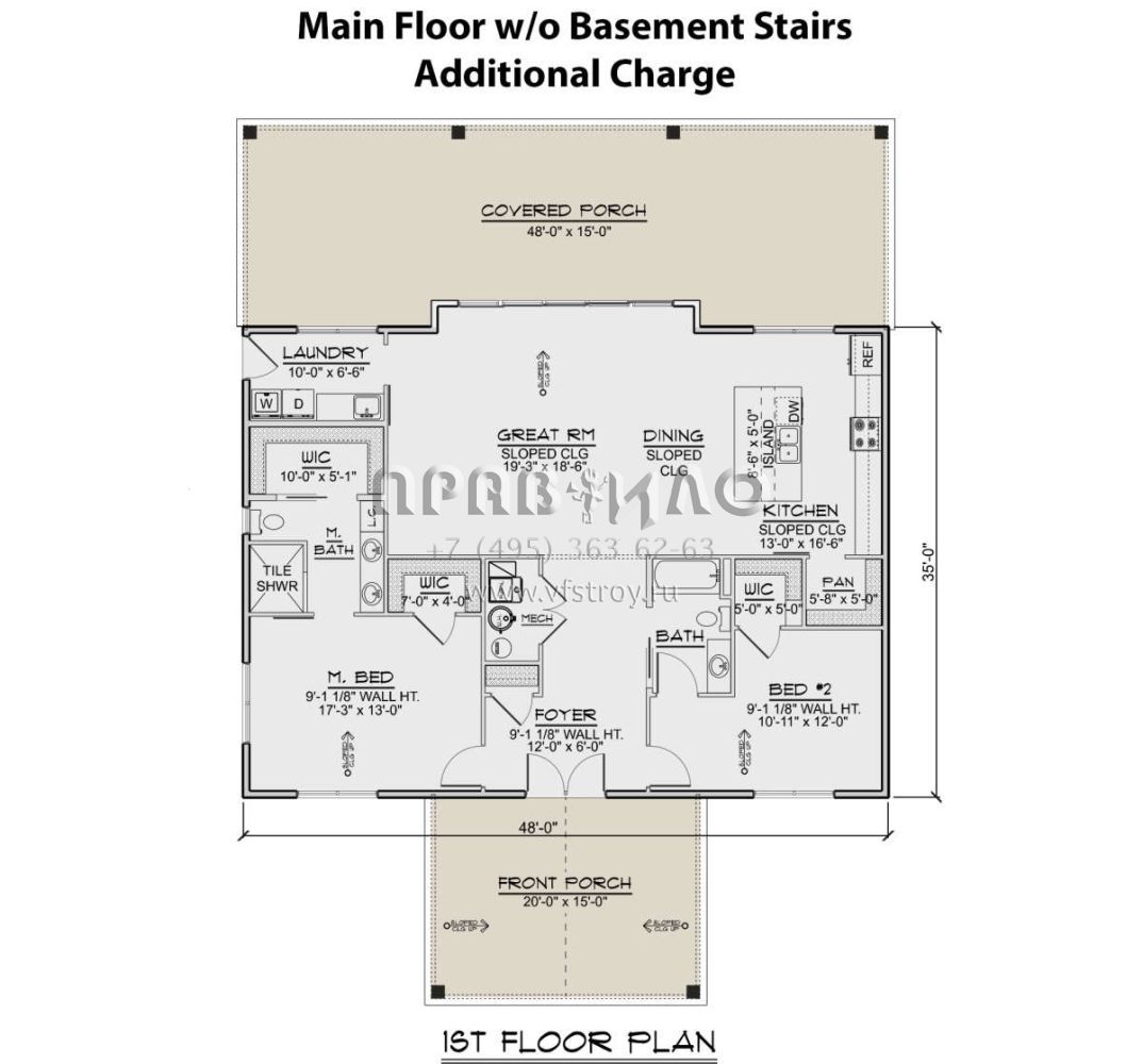 Проект одноэтажного дома без гаража в стиле Ранчо S5-156 (5032-00248)