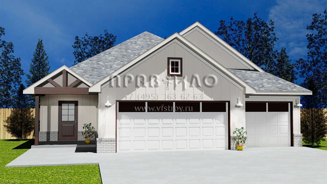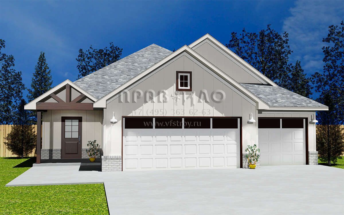 Проект одноэтажного дома с гаражом на три и более машин в стиле Ранчо S5-156 (677-00020)