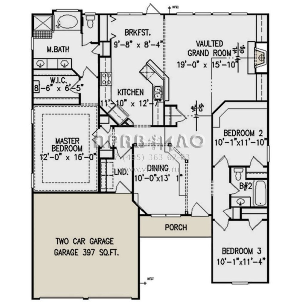 Проект одноэтажного дома с гаражом на две машины в стиле Ранчо S5-156 (699-00200)