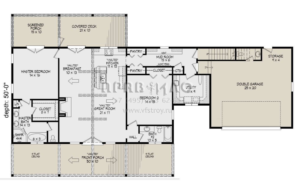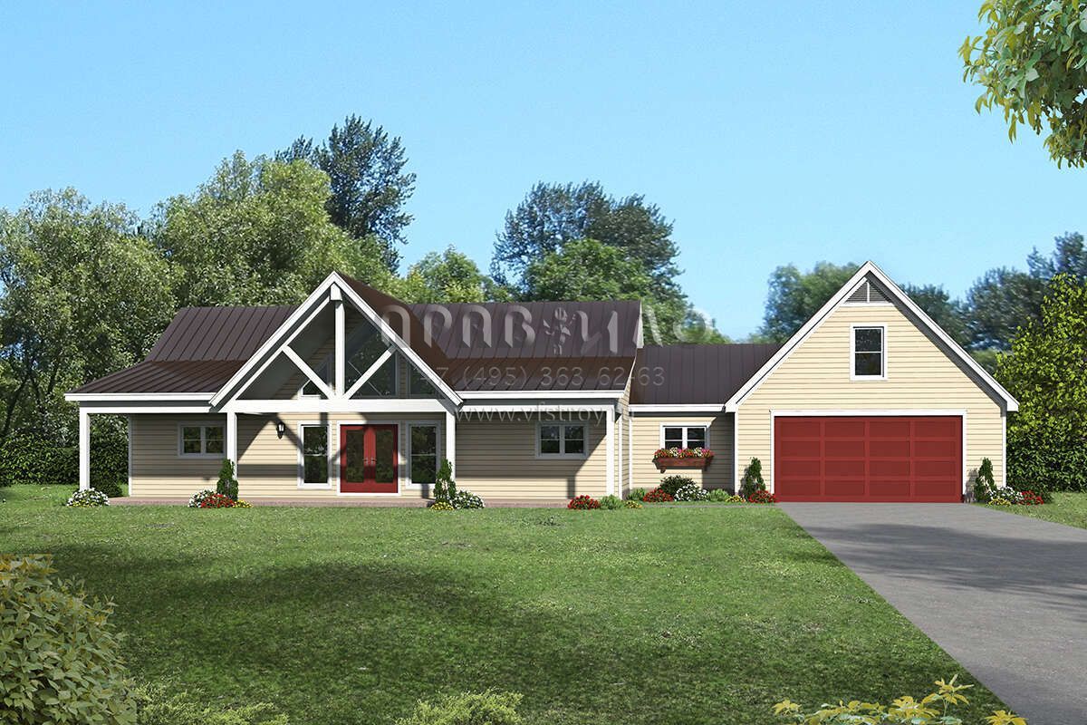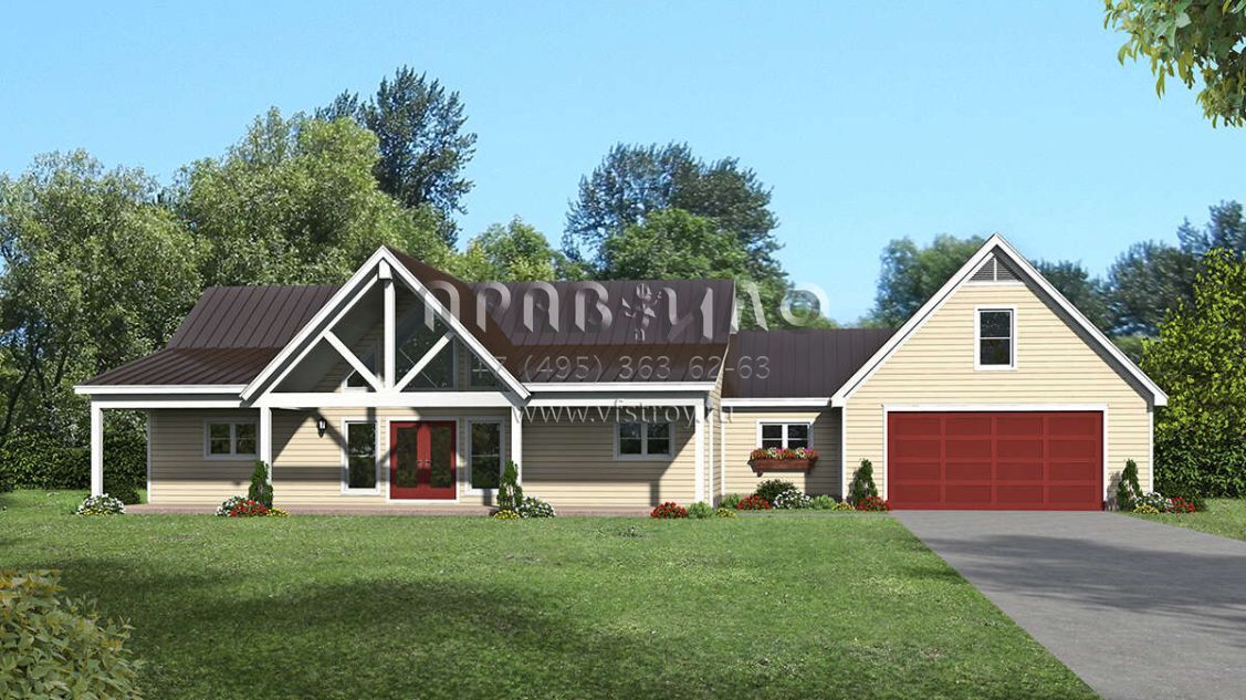 Проект одноэтажного дома с гаражом на две машины в стиле Ранчо S5-156 (940-00257)