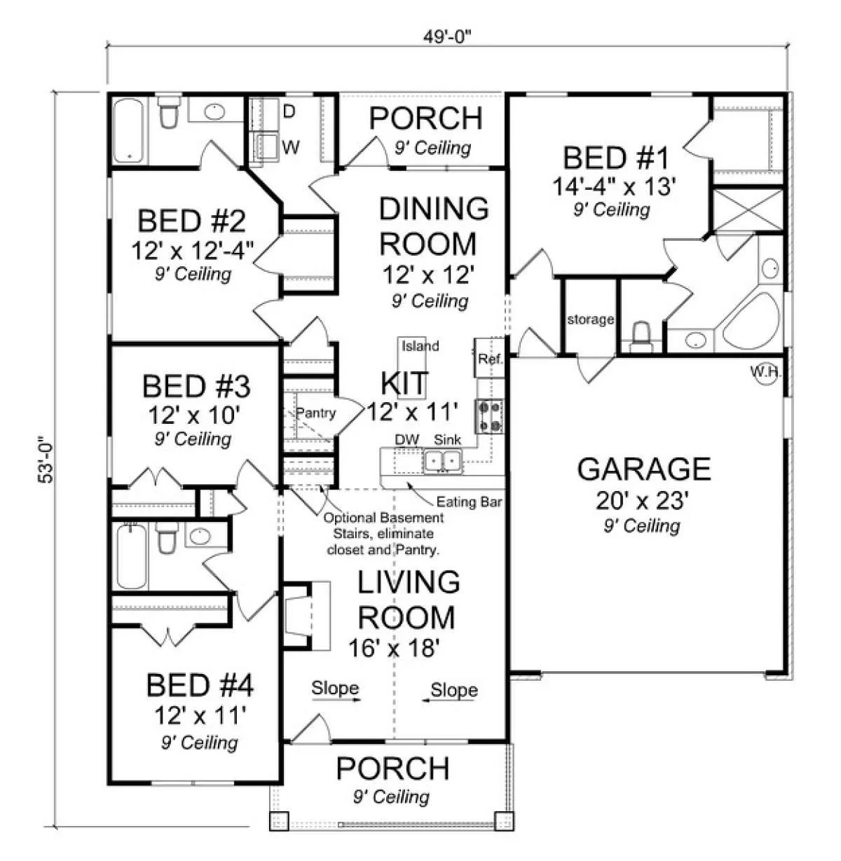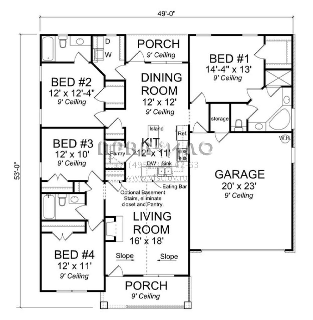 S5-157 (4848-00014) Это иностранный проект, для которого требуется адаптация под нормы, действующие в Российской Федерации. Вы видите проект дома в стиле Ранчо. В этом доме сочетаются черты сельской постройки и аскетичность лофта. Внутри жильцы смогут проводить время с максимальным комфортом. Обратим внимание, что сейчас на планировках все размеры представлены в футах. Для перевода в метры вам необходимо значение в футах умножить на 0,3048.