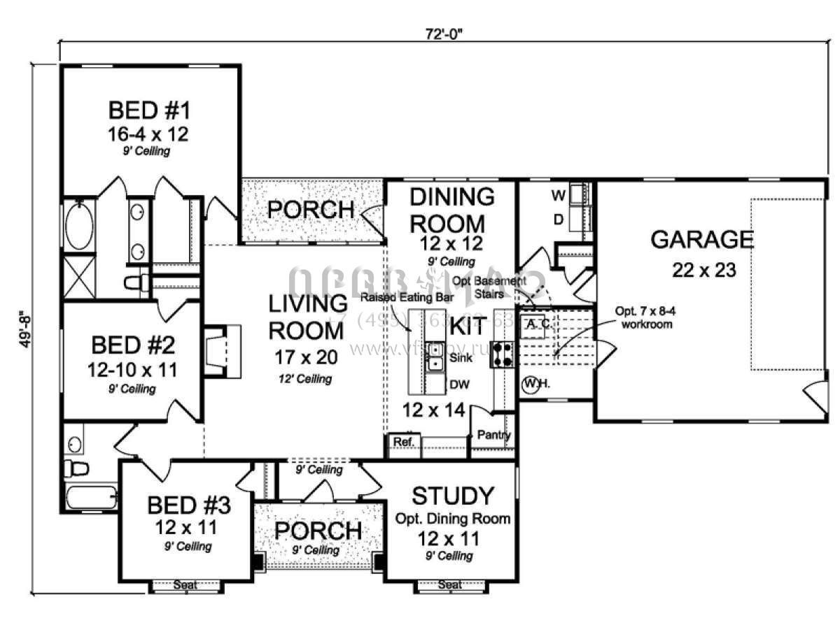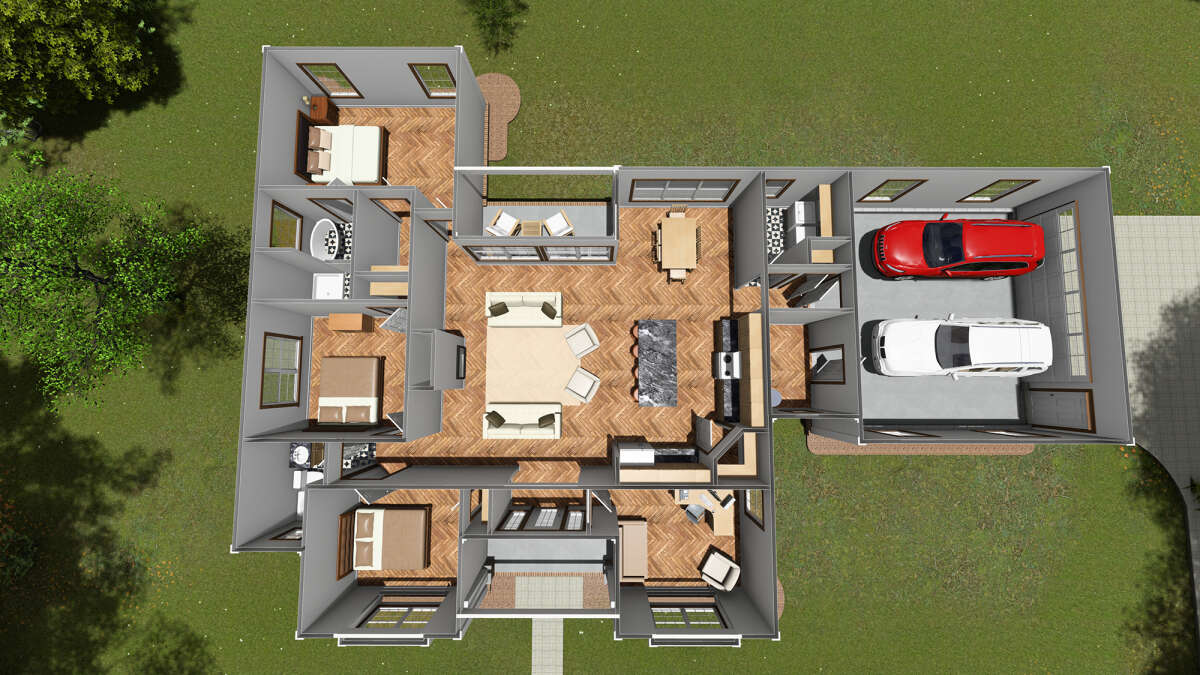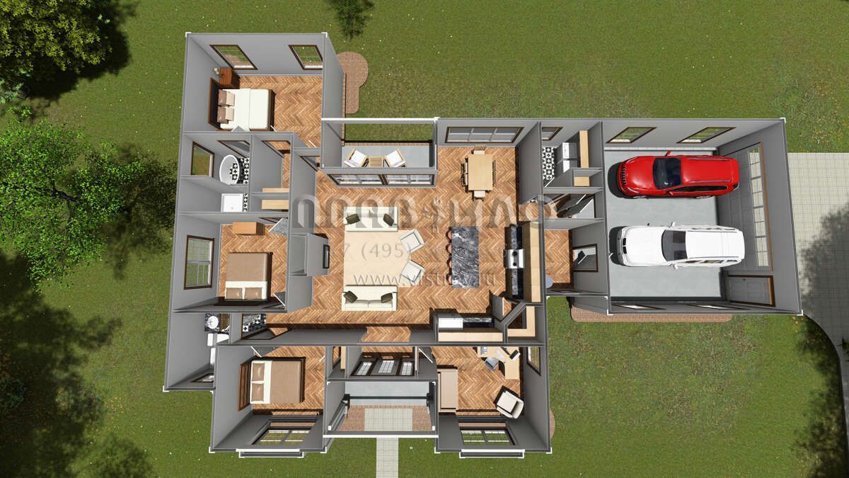 Проект одноэтажного дома с гаражом на две машины в стиле Ранчо S5-157 (4848-00327)