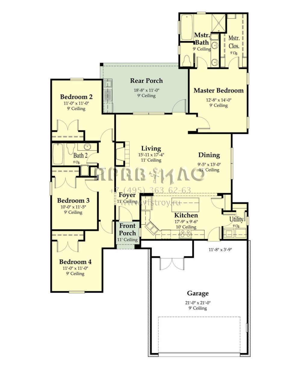 Проект одноэтажного дома с гаражом на две машины в стиле Ранчо S5-157 (7516-00065)