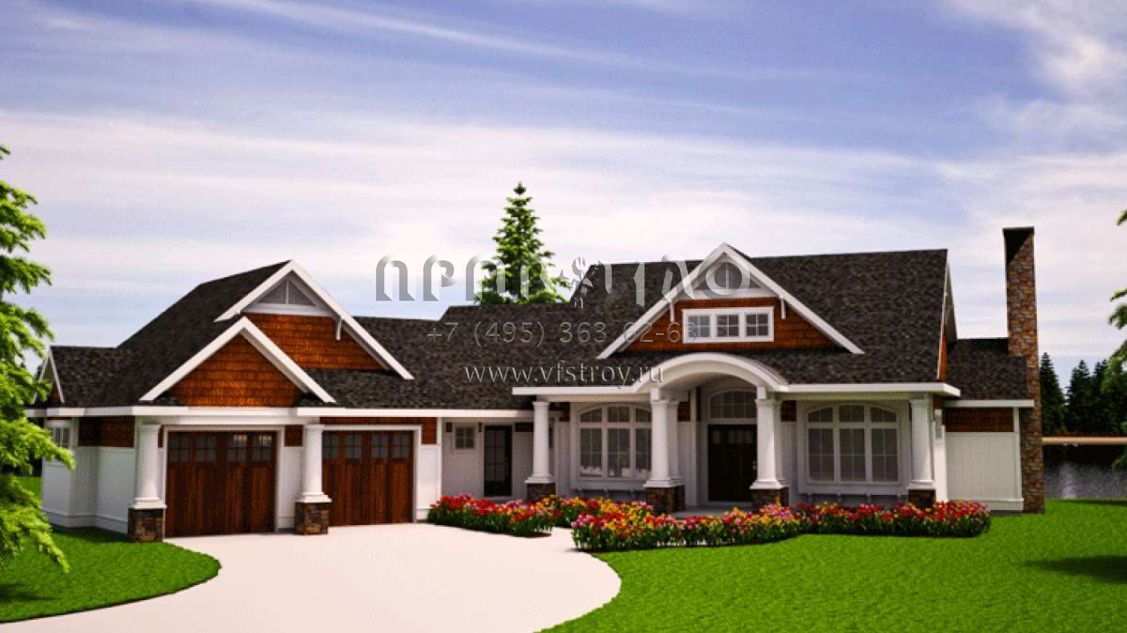Проект одноэтажного дома с гаражом на две машины в стиле Ранчо S5-157 (7806-00010)