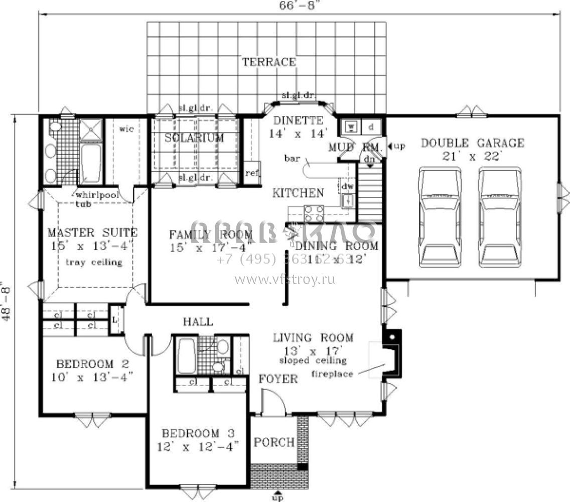 Проект одноэтажного дома с гаражом на две машины в стиле Ранчо S5-158 (033-00071)