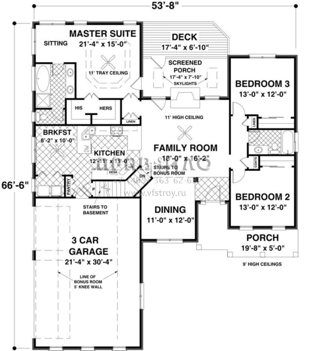 S5-158 (036-00196) Это иностранный проект, для которого требуется адаптация под нормы, действующие в Российской Федерации. Вы видите проект дома в стиле Ранчо. В этом доме сочетаются черты сельской постройки и аскетичность лофта. Внутри жильцы смогут проводить время с максимальным комфортом. Обратим внимание, что сейчас на планировках все размеры представлены в футах. Для перевода в метры вам необходимо значение в футах умножить на 0,3048.