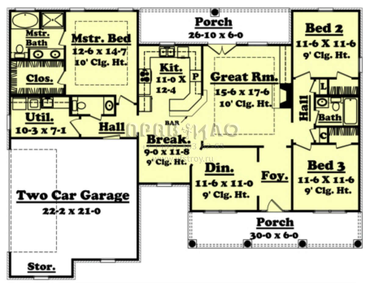 Проект одноэтажного дома с гаражом на две машины в стиле Ранчо S5-158 (041-00017)
