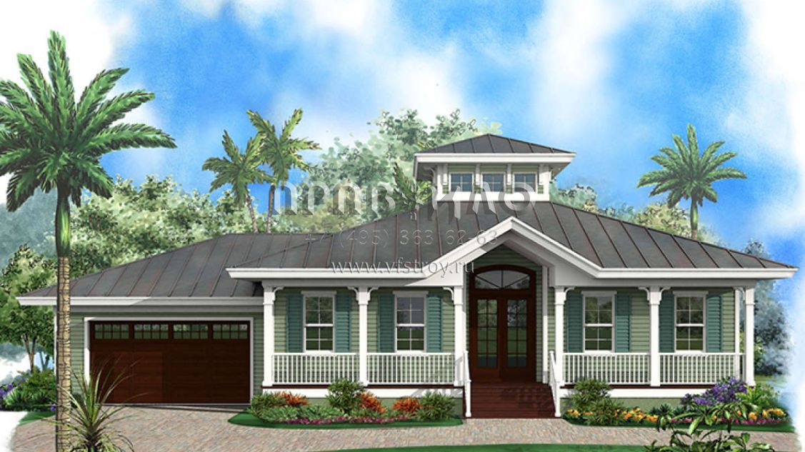 Проект одноэтажного дома с гаражом на две машины в прибрежном стиле S5-158 (1018-00272)