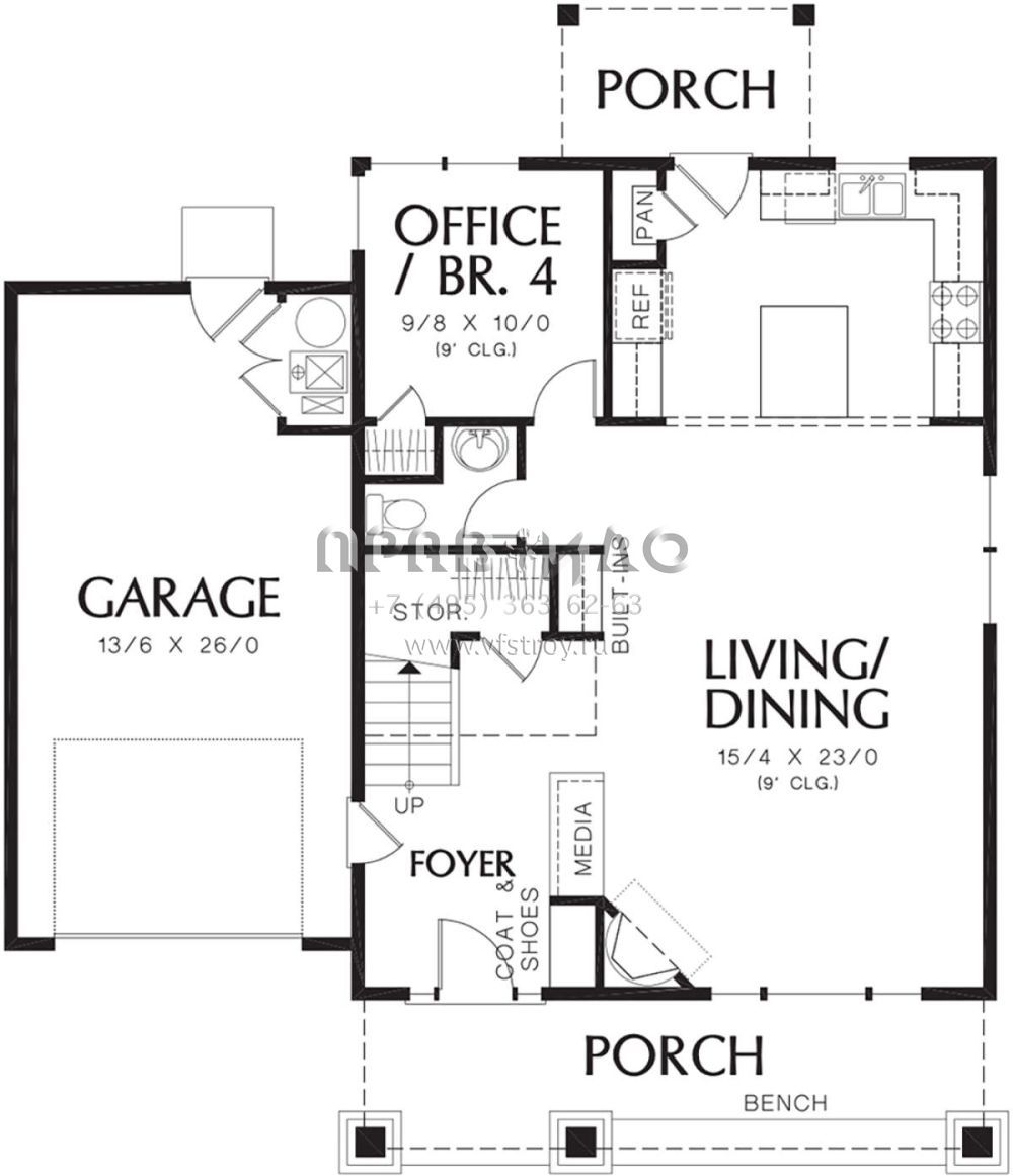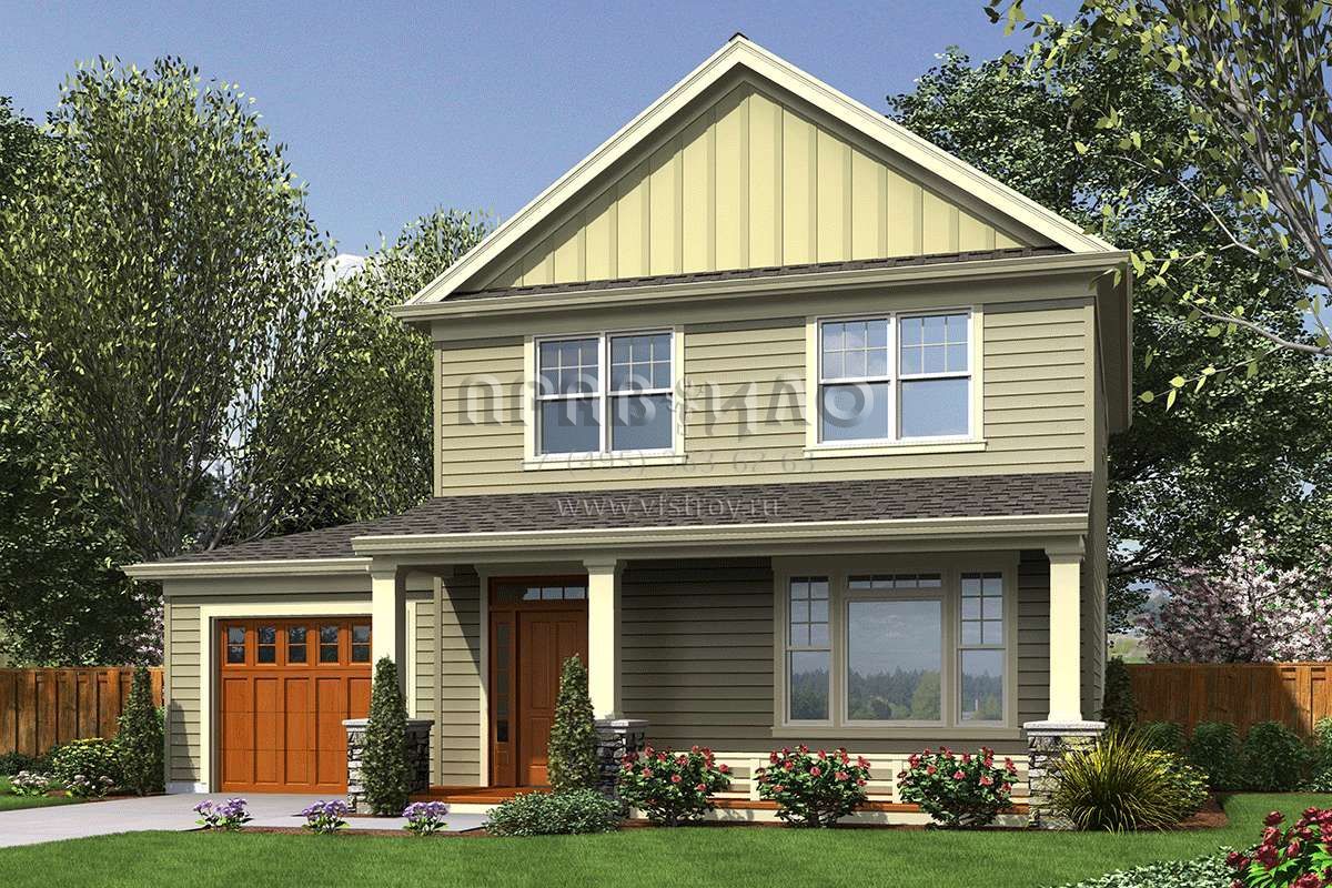 Проект двухэтажного дома с гаражом на одну машину в стиле Ранчо S5-158 (2559-00039)