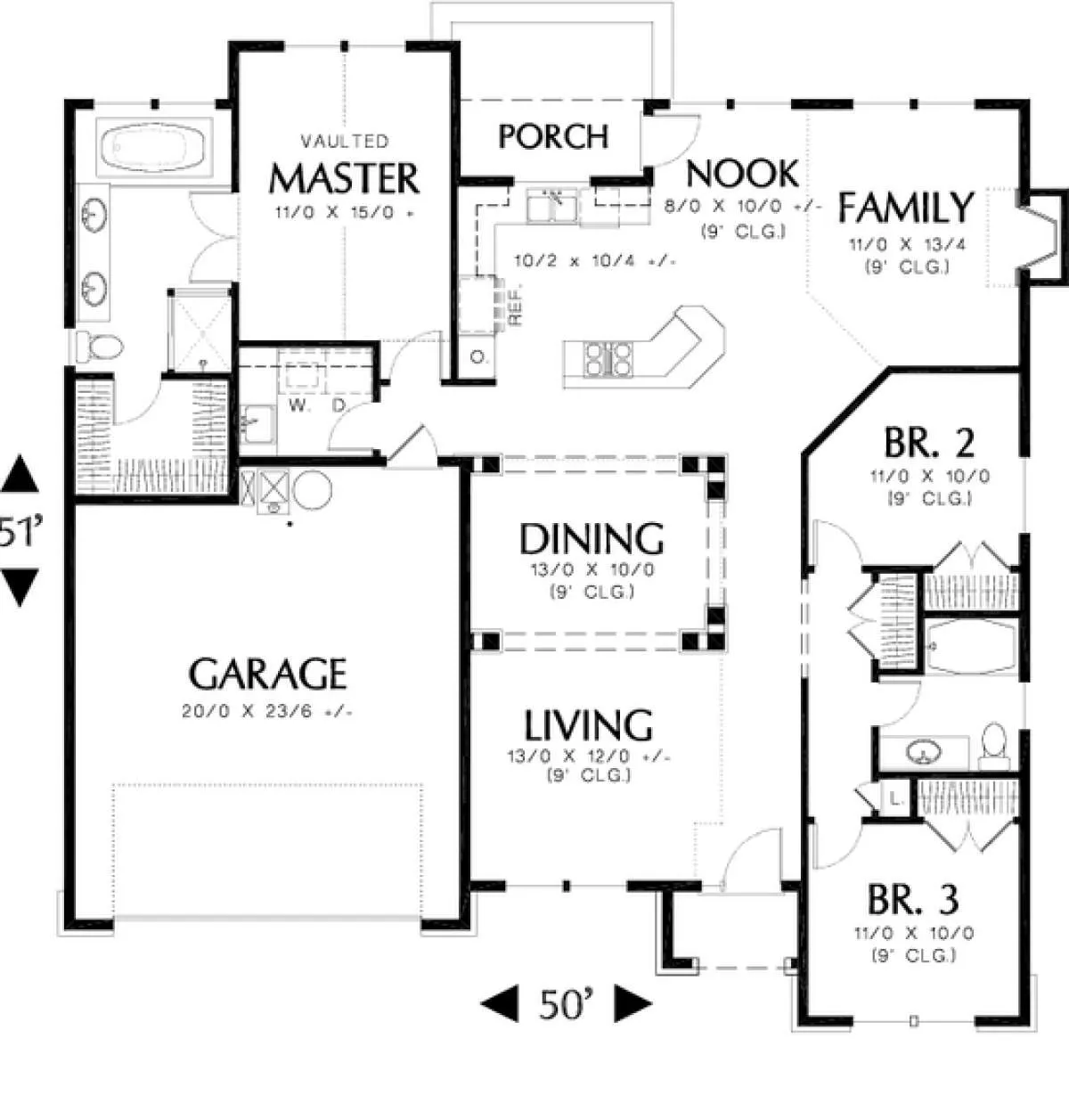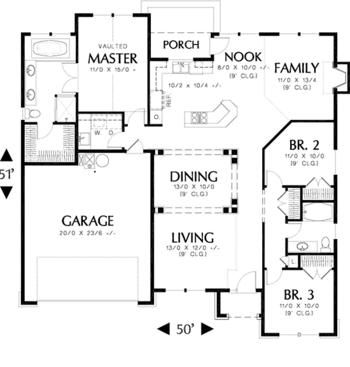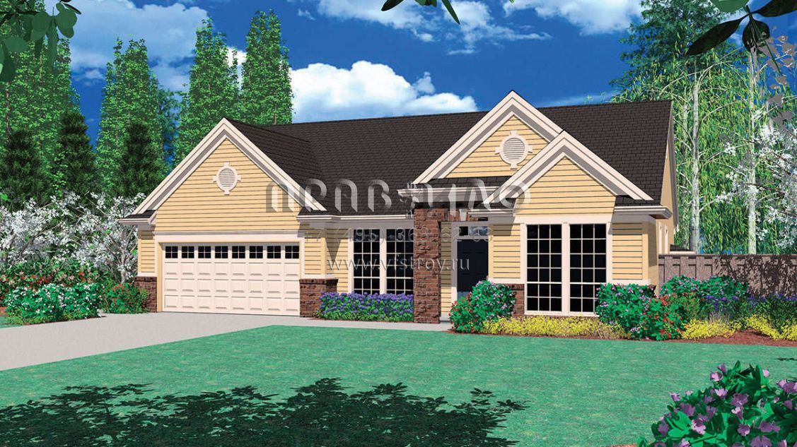 Проект одноэтажного дома с гаражом на две машины в стиле Ранчо S5-158 (2559-00081)