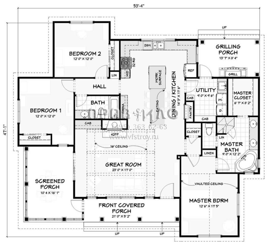 Проект одноэтажного дома с гаражом на две машины в стиле Ранчо S5-158 (3125-00022)