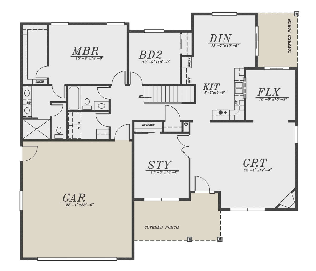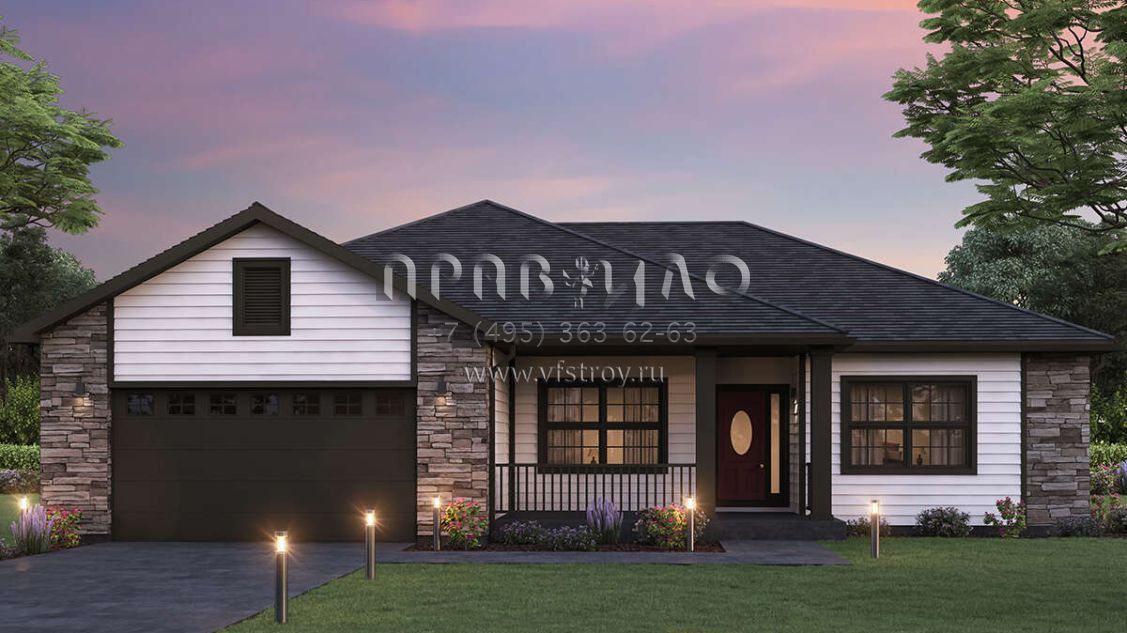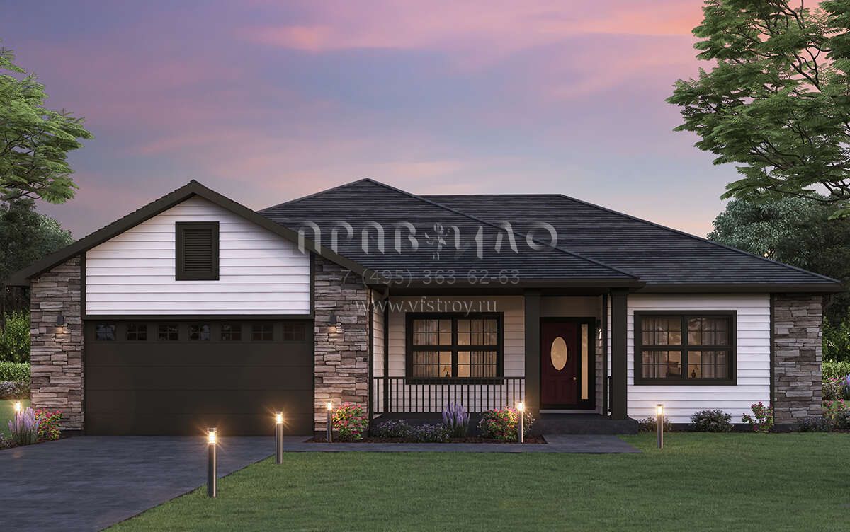 Проект одноэтажного дома с гаражом на две машины в стиле Ранчо S5-158 (5244-00019)