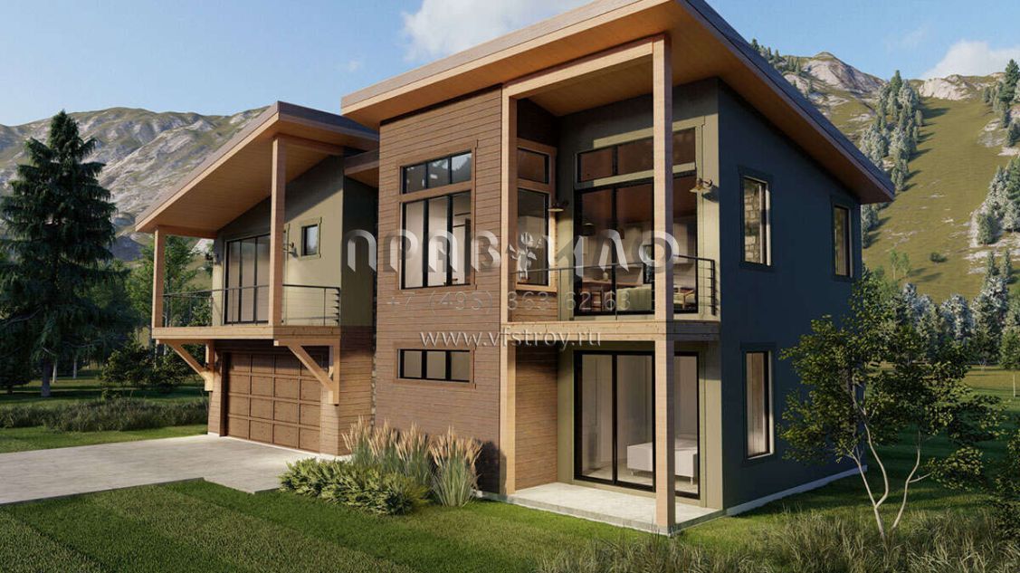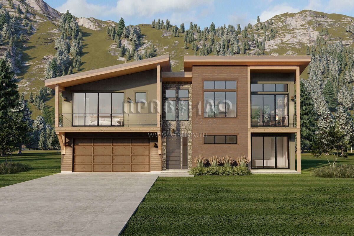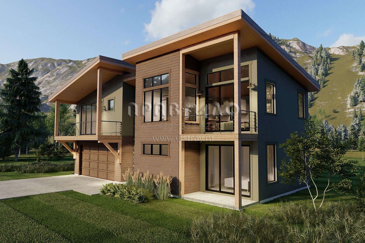 Проект двухэтажного дома с гаражом на две машины в современном стиле S5-158 (6422-00010)