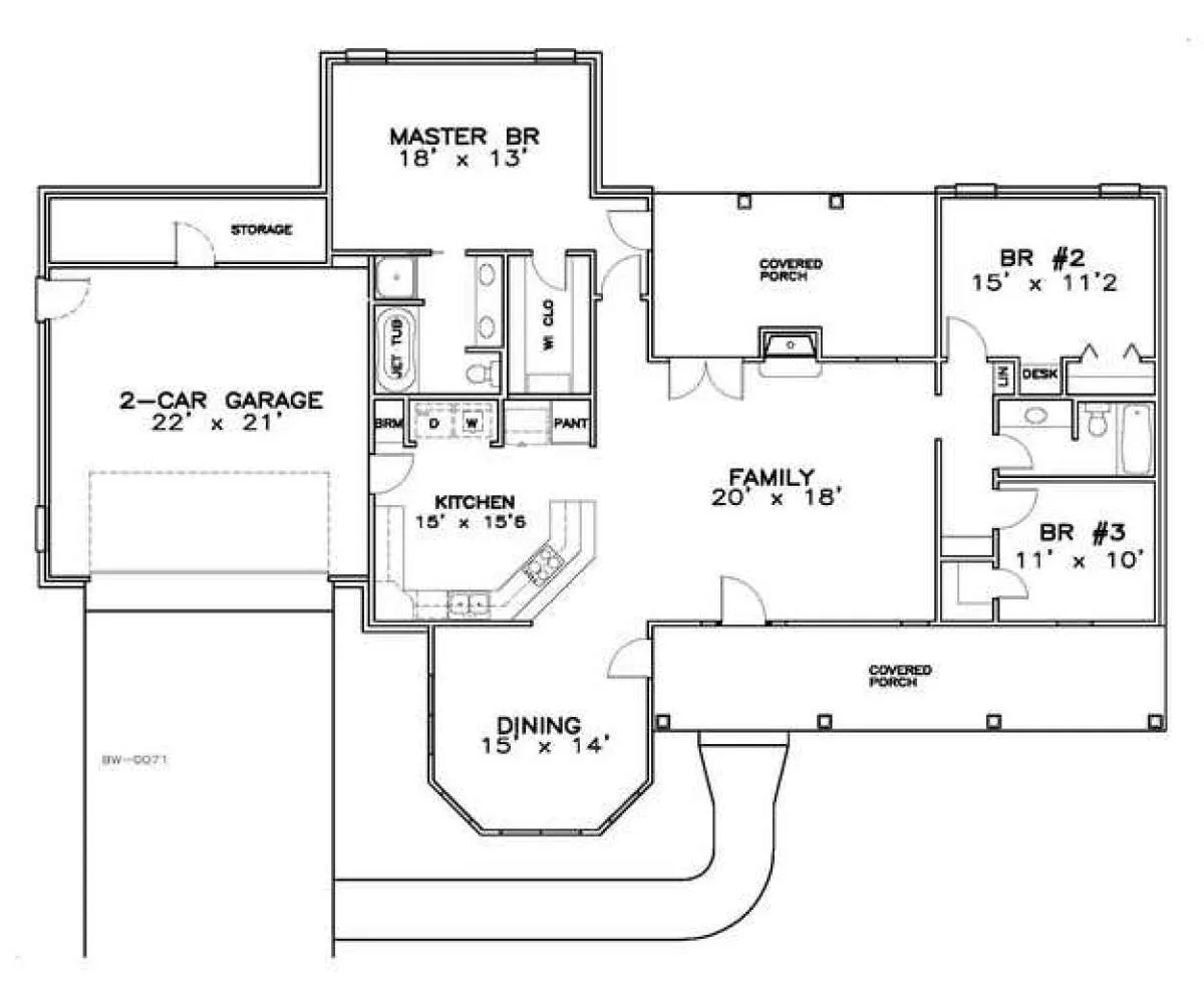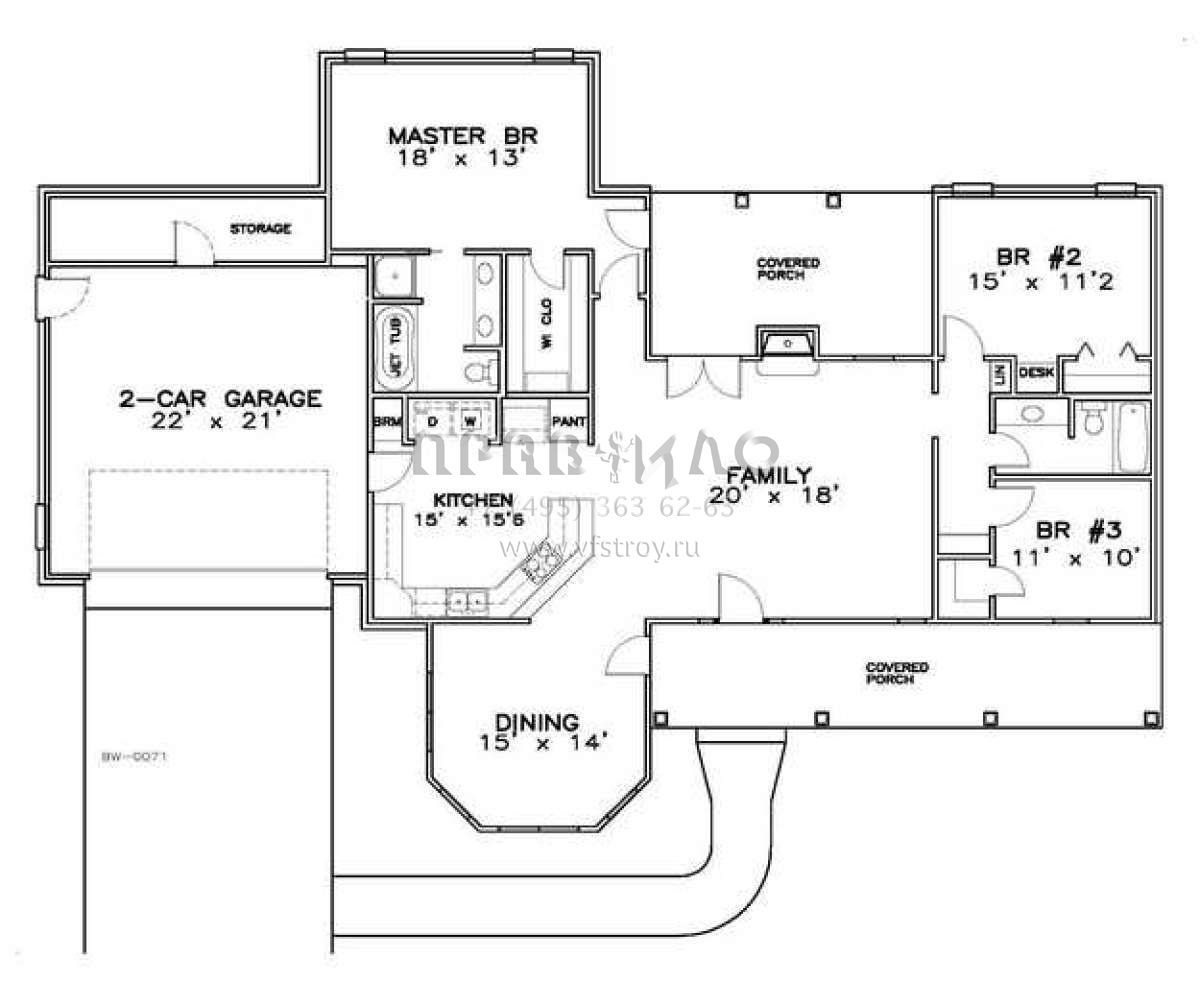 Проект одноэтажного дома с гаражом на две машины в стиле Ранчо S5-158 (6471-00021)