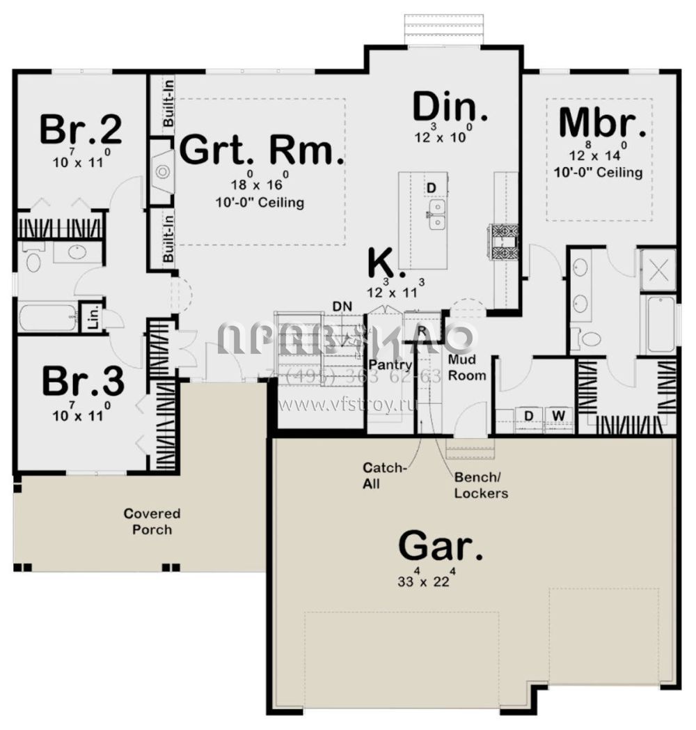 Проект одноэтажного дома с гаражом на три и более машин в стиле Ранчо S5-158 (963-00135)