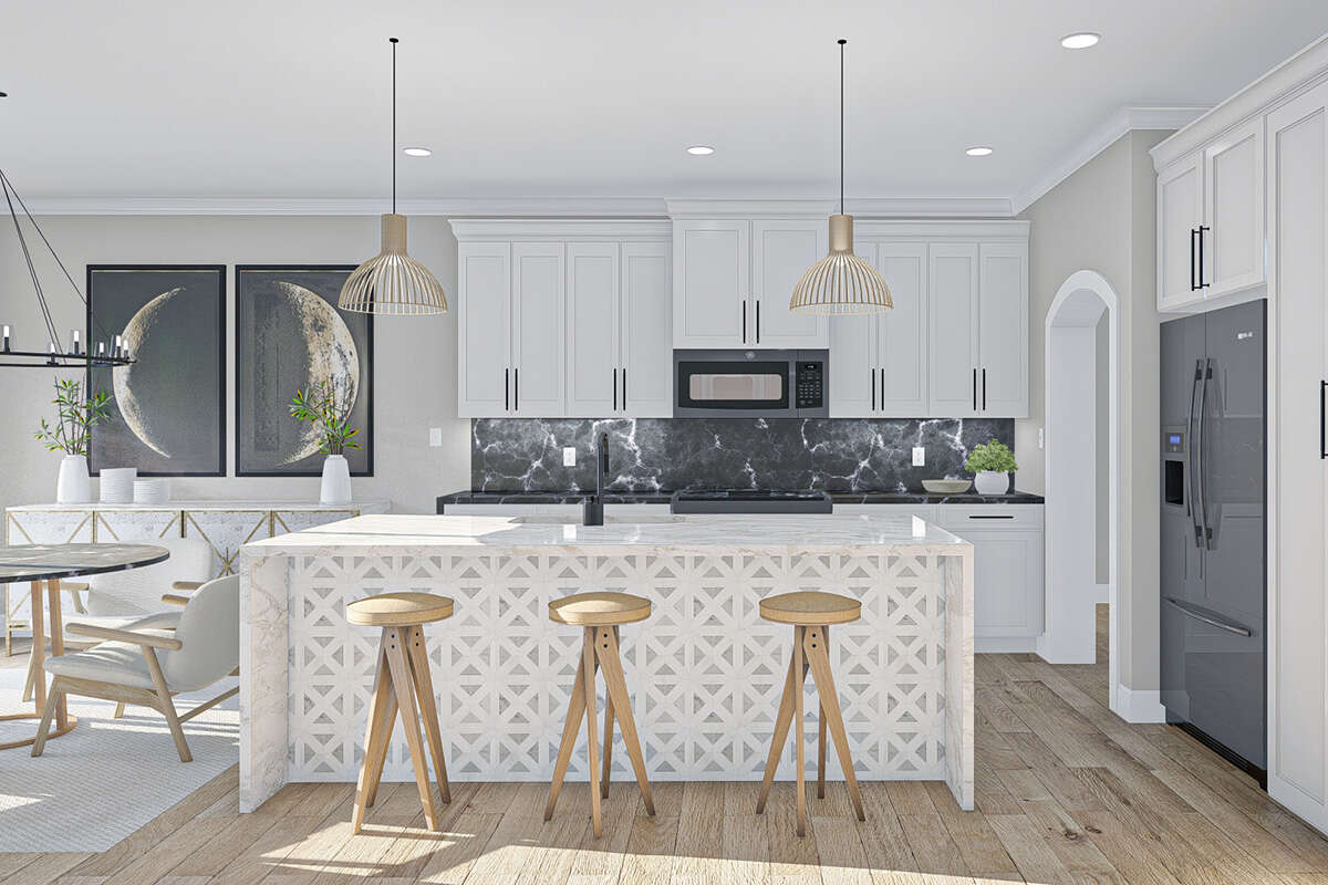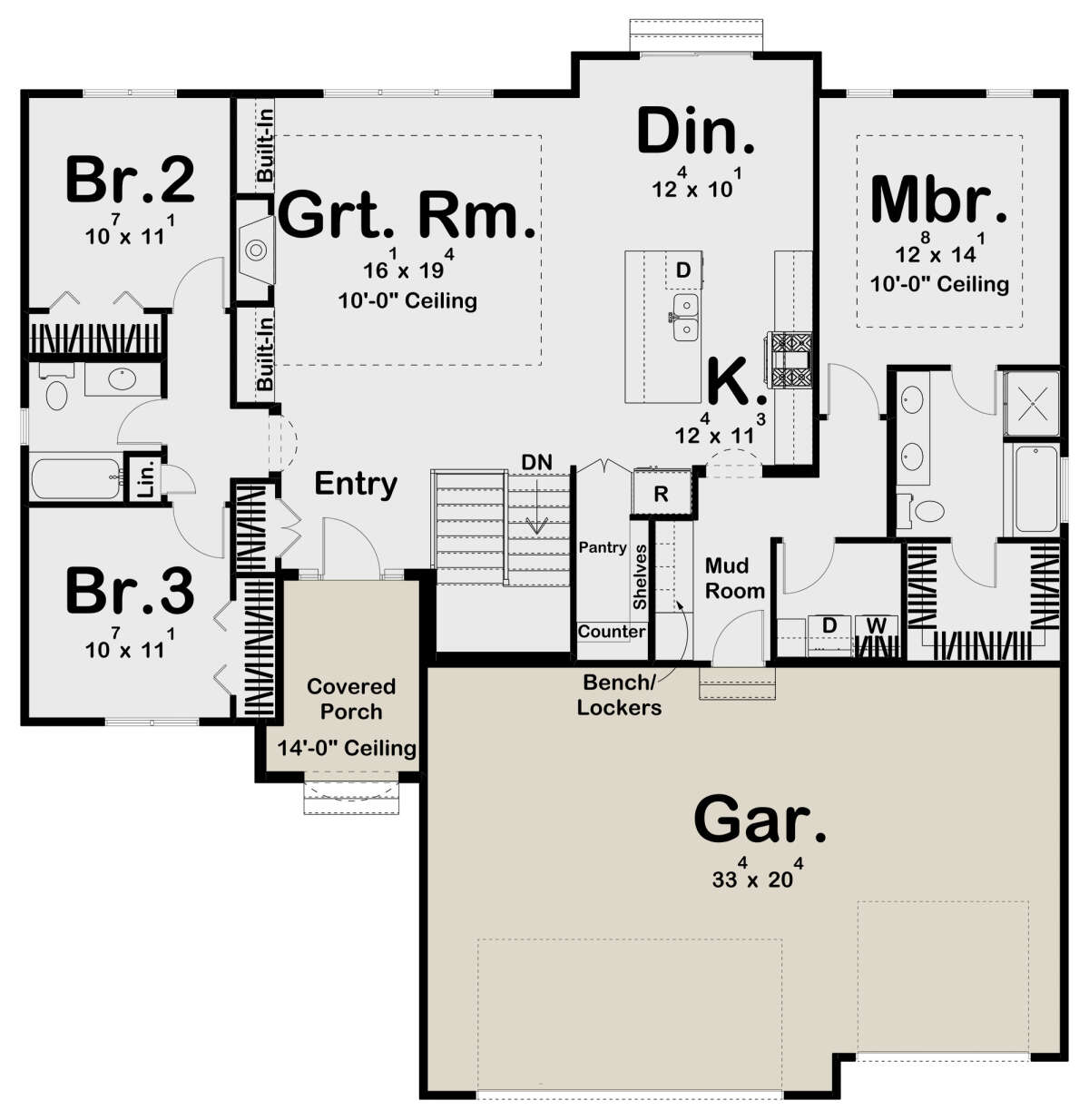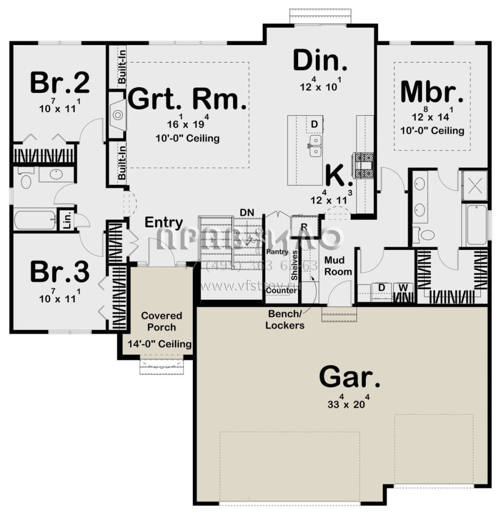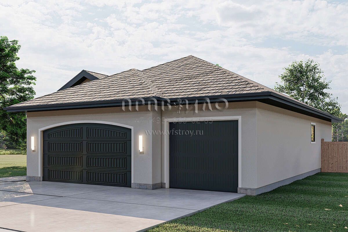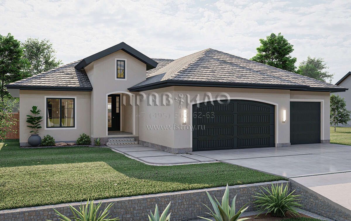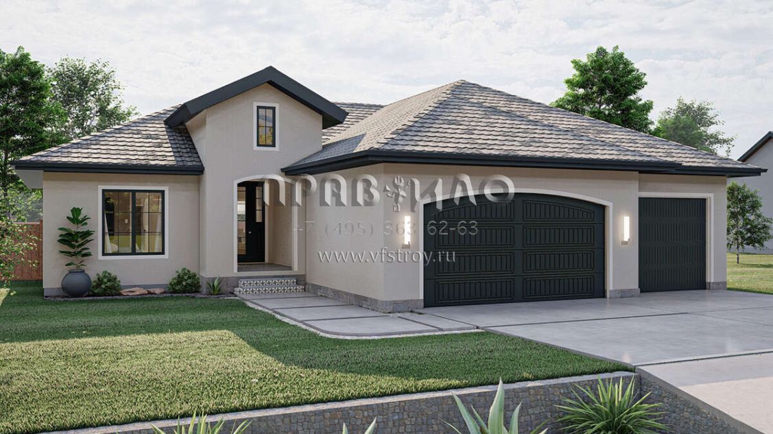Проект одноэтажного дома с гаражом на три и более машин в прибрежном стиле S5-158 (963-00612)