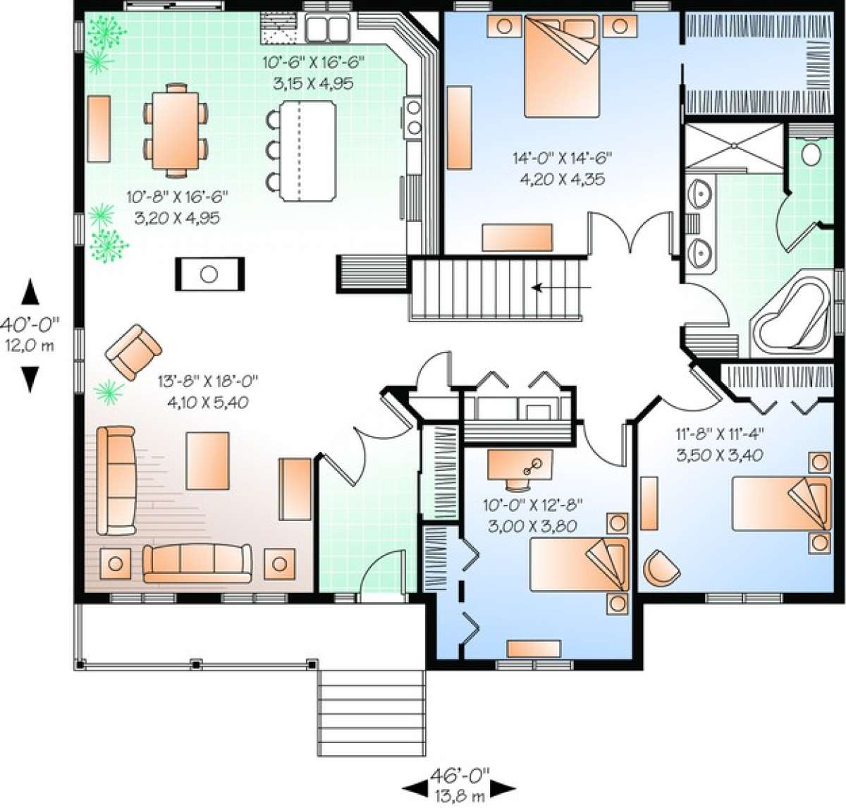 S5-159 (034-00281) Это иностранный проект, для которого требуется адаптация под нормы, действующие в Российской Федерации. Вы видите проект дома в стиле Ранчо. В этом доме сочетаются черты сельской постройки и аскетичность лофта. Внутри жильцы смогут проводить время с максимальным комфортом. Обратим внимание, что сейчас на планировках все размеры представлены в футах. Для перевода в метры вам необходимо значение в футах умножить на 0,3048.
