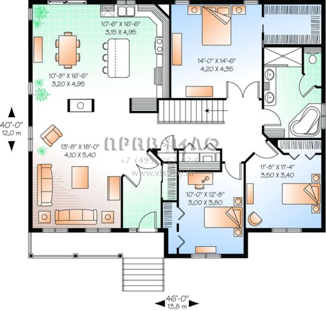 Поскольку этот проект разрабатывался иностранными архитекторами, для строительства дома требуется переработка проекта под действующие в России нормы. Данные визуализации проекта представлены для ознакомления с концепцией проекта. Проект разработан американским архитектурным бюро и представлен America's Best House Plans.