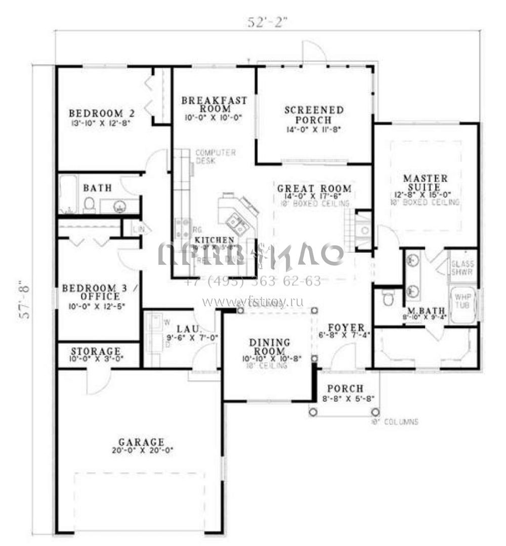 Поскольку этот проект разрабатывался иностранными архитекторами, для строительства дома требуется переработка проекта под действующие в России нормы. Данные визуализации проекта представлены для ознакомления с концепцией проекта. Проект разработан американским архитектурным бюро и представлен America's Best House Plans.