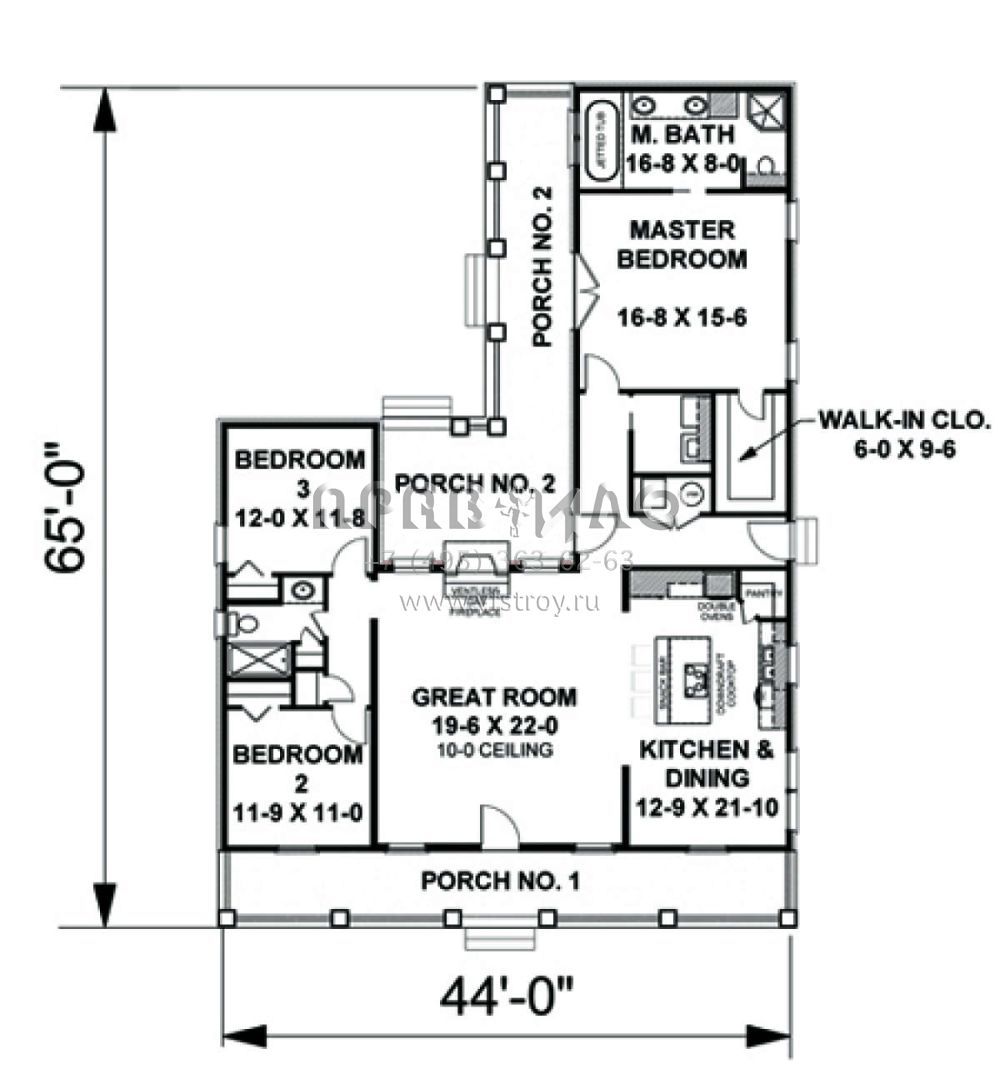 S5-159 (1776-00035) Это иностранный проект, для которого требуется адаптация под нормы, действующие в Российской Федерации. Вы видите проект дома в стиле Ранчо. В этом доме сочетаются черты сельской постройки и аскетичность лофта. Внутри жильцы смогут проводить время с максимальным комфортом. Обратим внимание, что сейчас на планировках все размеры представлены в футах. Для перевода в метры вам необходимо значение в футах умножить на 0,3048.
