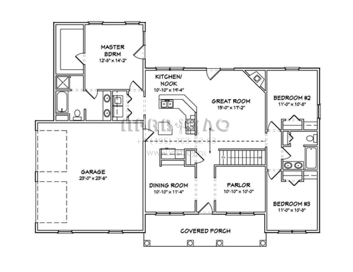 Проект одноэтажного дома с гаражом на две машины в стиле Ранчо S5-159 (849-00104)