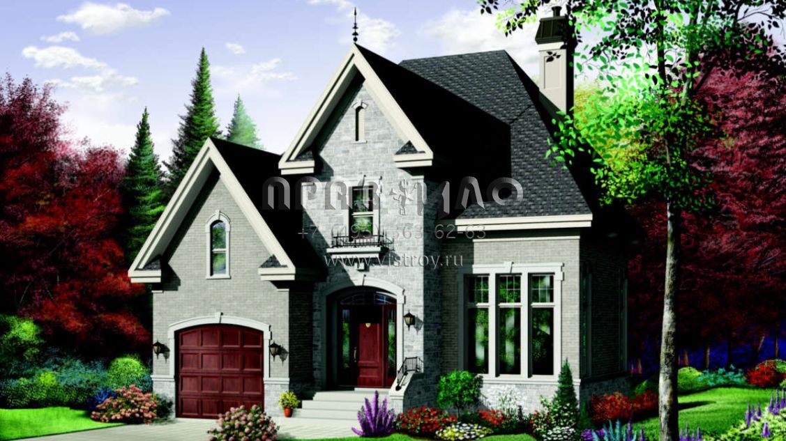 Проект двухэтажного дома с гаражом на одну машину в английском стиле S5-160 (034-00075)