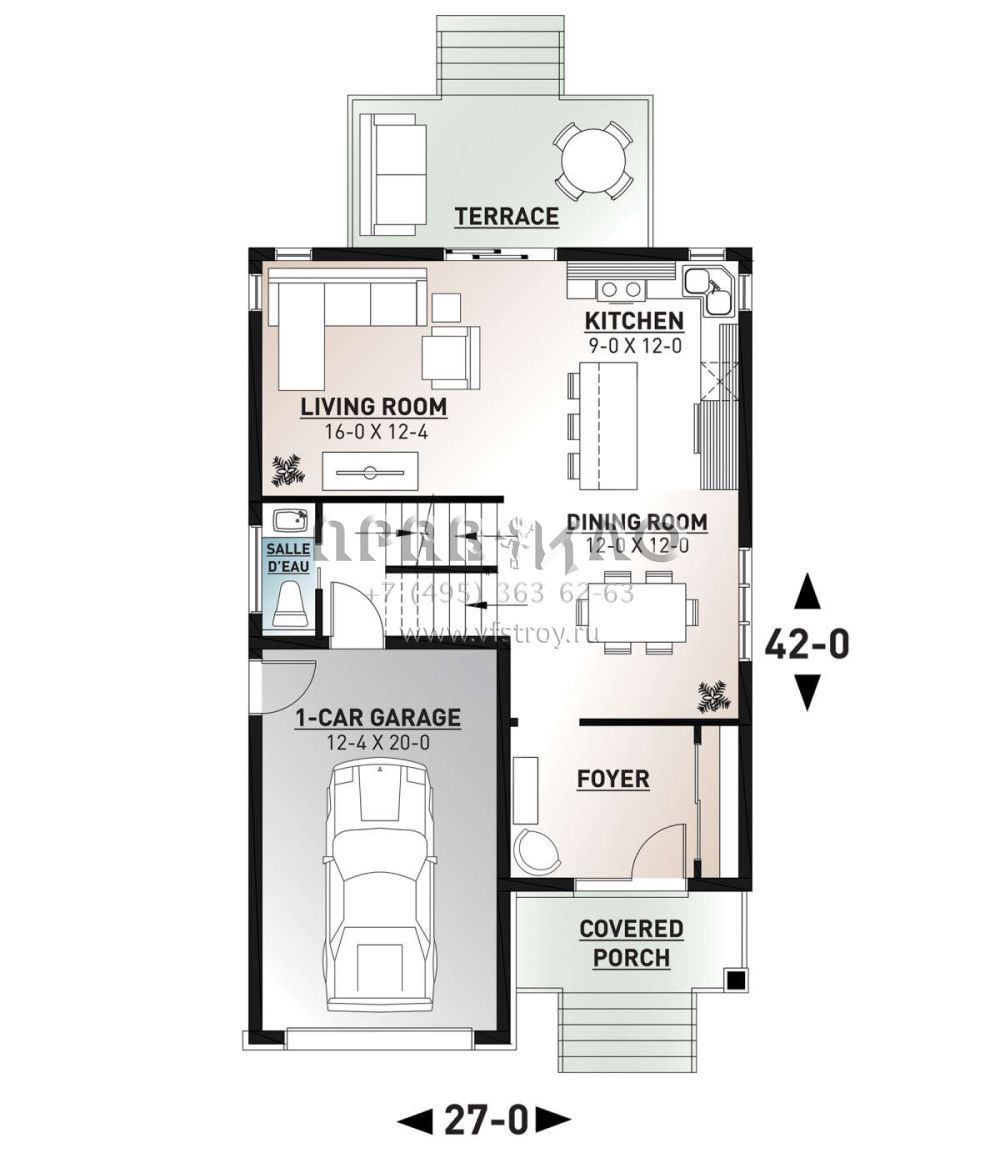 Проект двухэтажного дома с гаражом на одну машину в современном стиле S5-160 (034-01191)