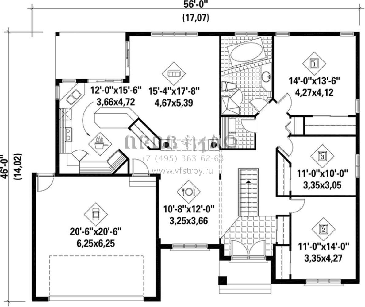 Проект одноэтажного дома с гаражом на две машины в стиле Ранчо S5-160 (6146-00200)