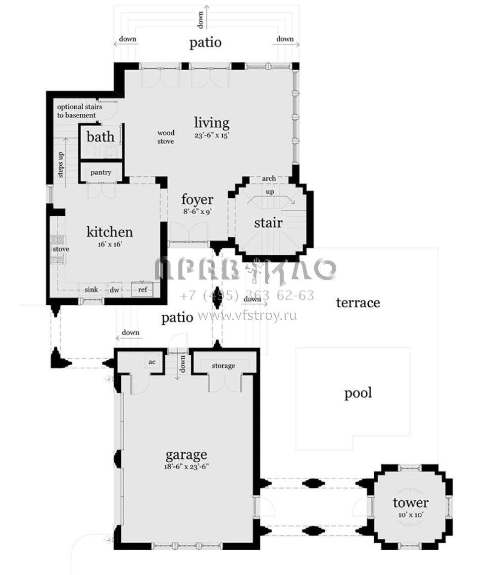 S5-161 (028-00149) Это иностранный проект, для которого требуется адаптация под нормы, действующие в Российской Федерации. Вы видите проект дома в английском стиле. В этом доме сочетаются черты сельской постройки и аскетичность лофта. Внутри жильцы смогут проводить время с максимальным комфортом. Обратим внимание, что сейчас на планировках все размеры представлены в футах. Для перевода в метры вам необходимо значение в футах умножить на 0,3048.