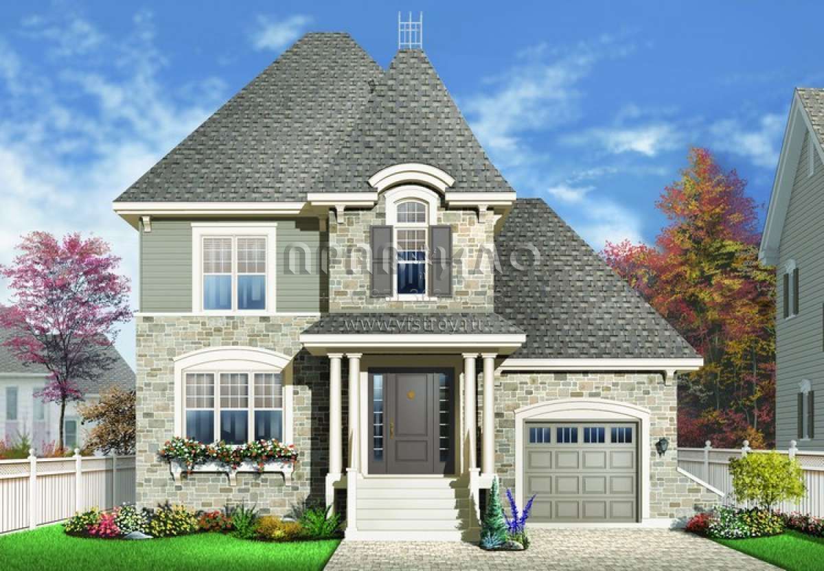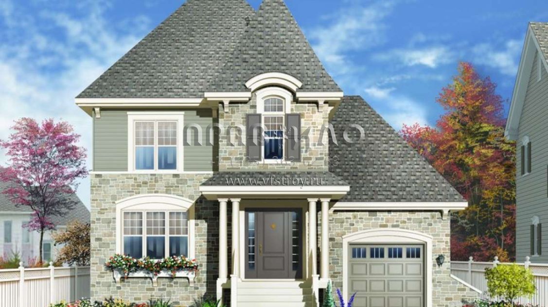 Проект двухэтажного дома с гаражом на одну машину в английском стиле S5-161 (034-00745)