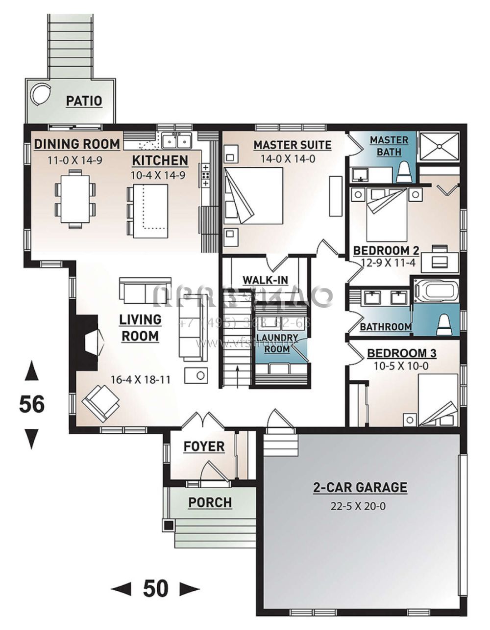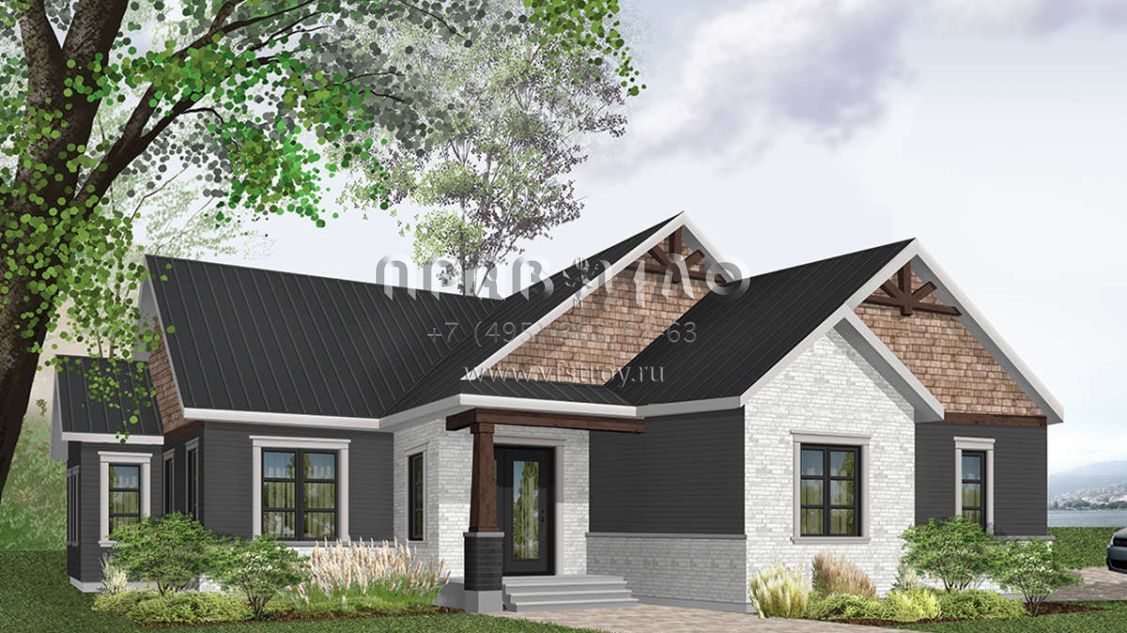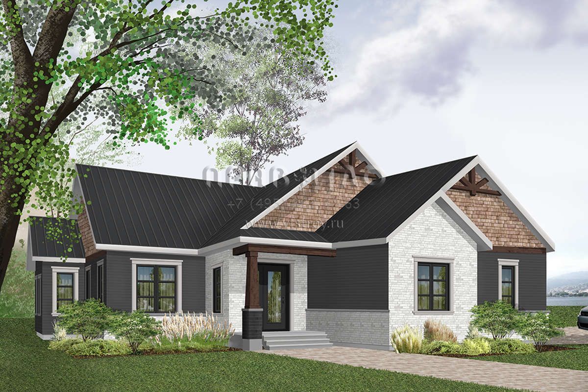 Проект одноэтажного дома с гаражом на две машины в стиле Ранчо S5-161 (034-01177)