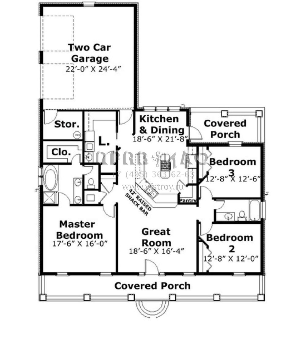 Проект одноэтажного дома с гаражом на две машины в стиле Ранчо S5-161 (1776-00037)