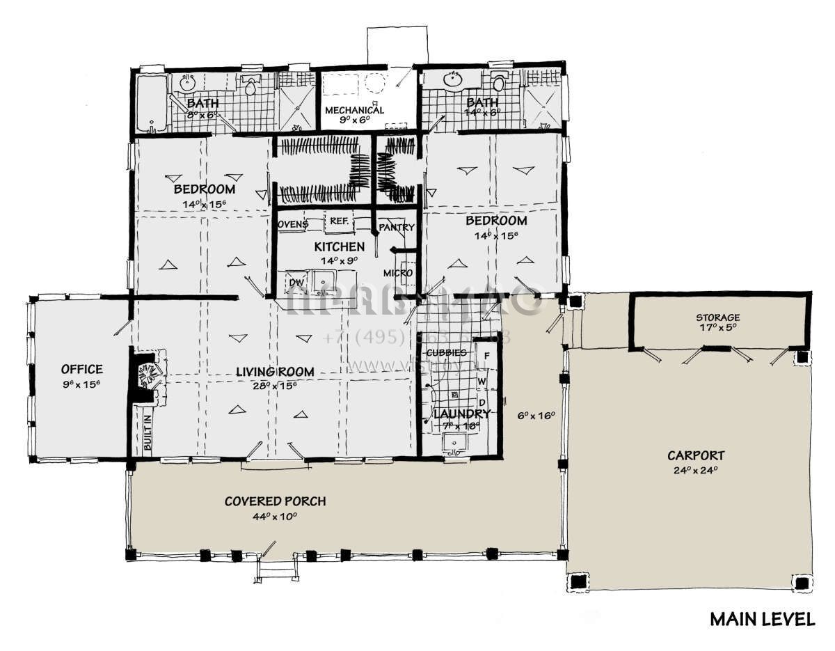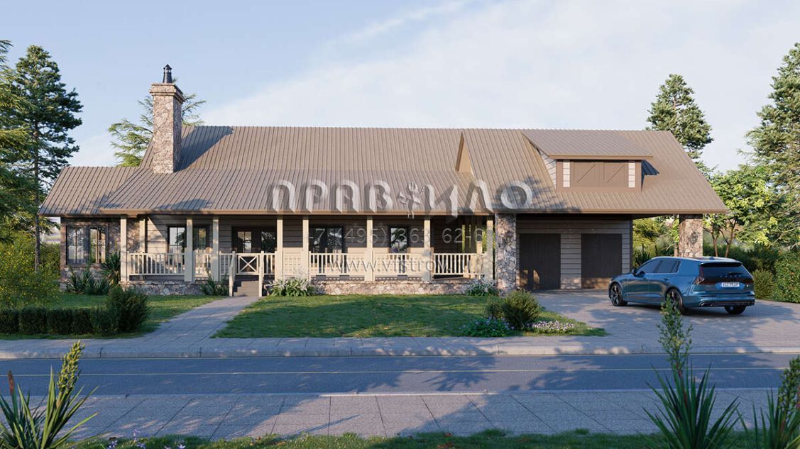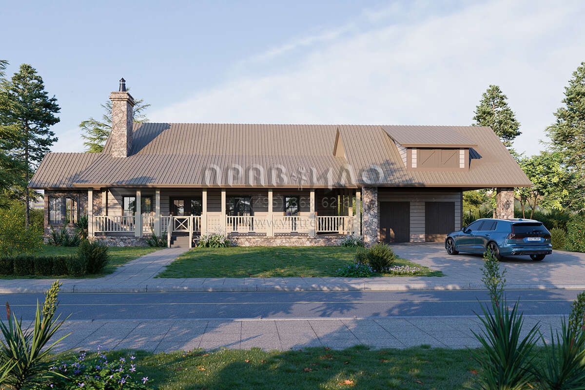 Проект одноэтажного дома с гаражом на две машины в стиле Ранчо S5-161 (1907-00058)