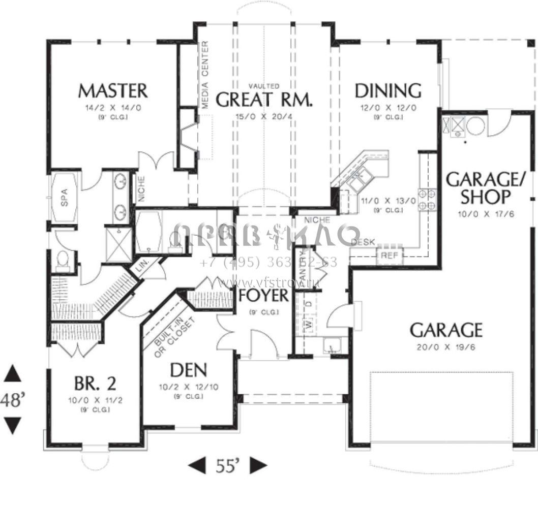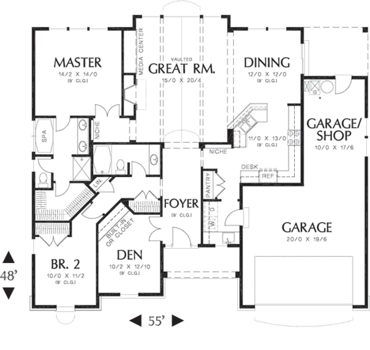 Проект одноэтажного дома с гаражом на три и более машин в стиле Ранчо S5-161 (2559-00084)