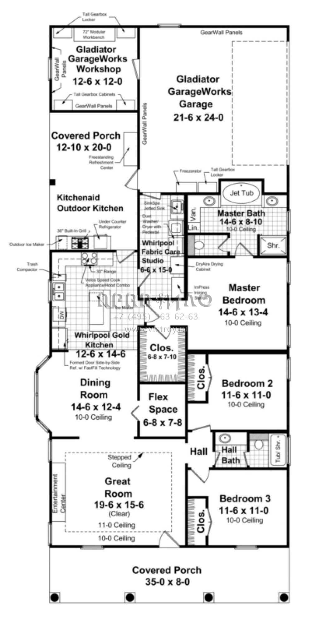 Поскольку этот проект разрабатывался иностранными архитекторами, для строительства дома требуется переработка проекта под действующие в России нормы. Данные визуализации проекта представлены для ознакомления с концепцией проекта. Проект разработан американским архитектурным бюро и представлен America's Best House Plans.