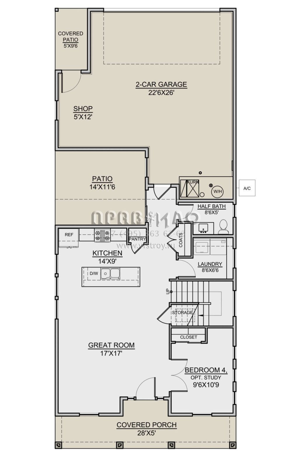 Проект двухэтажного дома с гаражом на две машины в стиле Ранчо S5-161 (7306-00034)