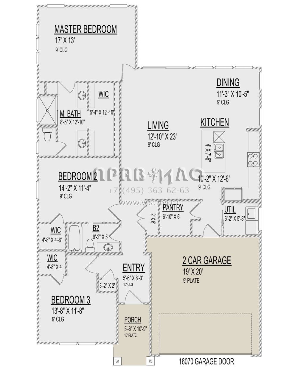Проект одноэтажного дома с гаражом на две машины в стиле Ранчо S5-161 (9300-00043)