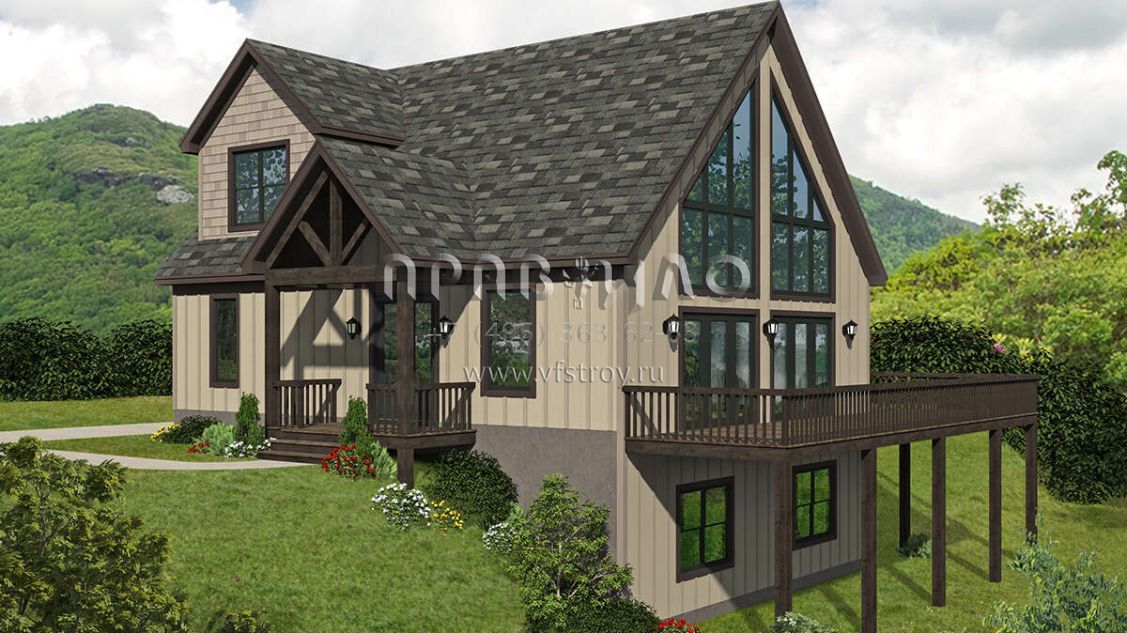 Проект двухэтажного дома без гаража в стиле Шале S5-161 (940-00180)